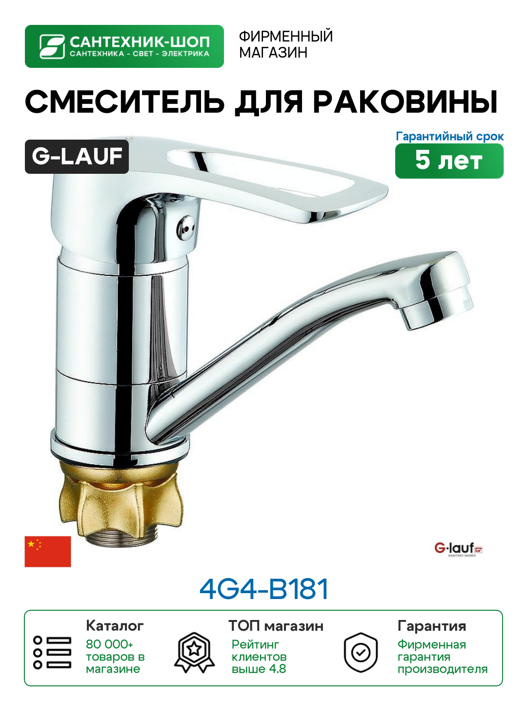 Купить Смеситель для раковины G-Lauf 4G4-B181 Хром с доставкой по всей России.