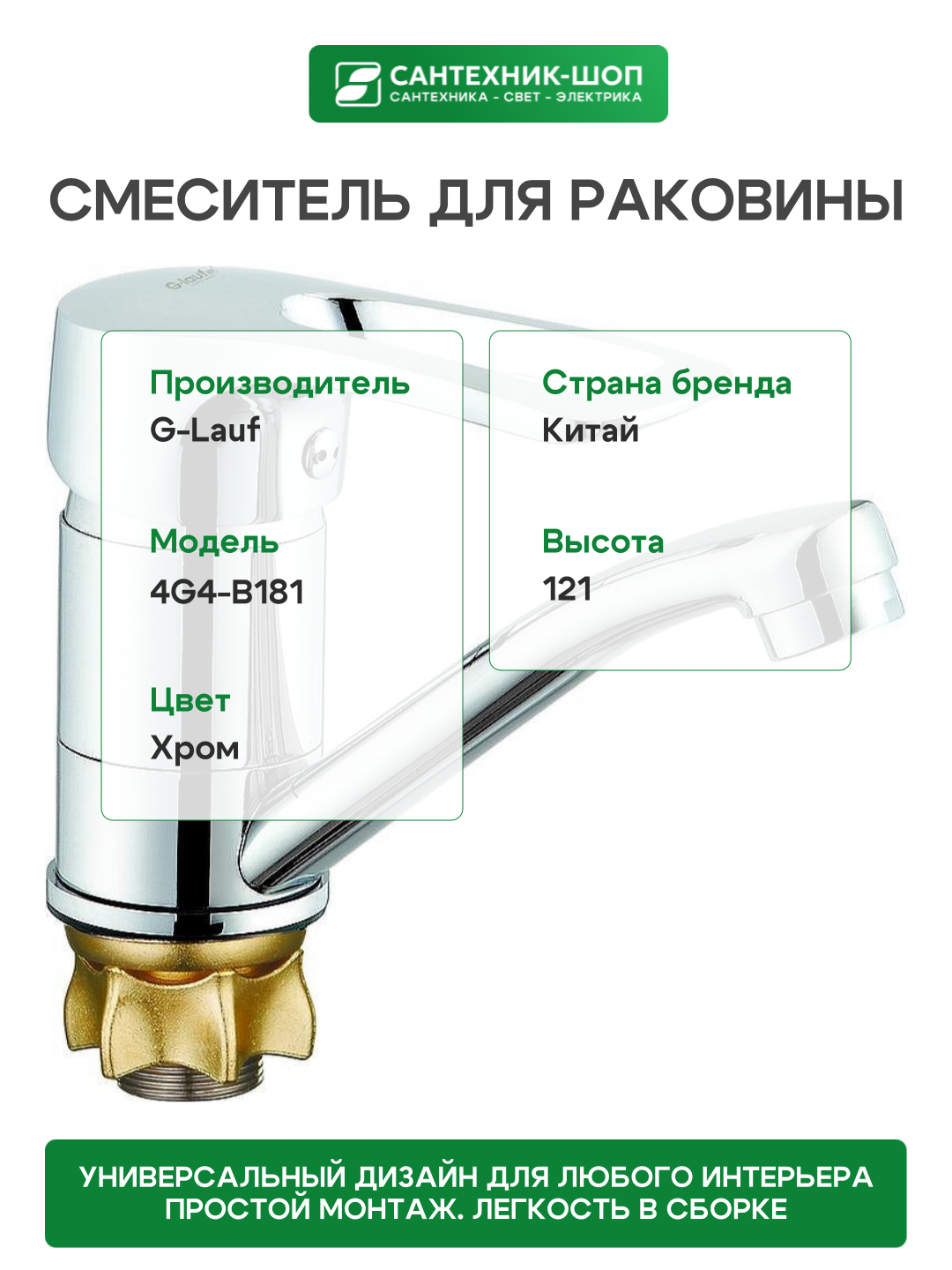 Смеситель для раковины G-Lauf 4G4-B181 Хром: сравнение цен, характеристики, фото, актуальное наличие и цены.
