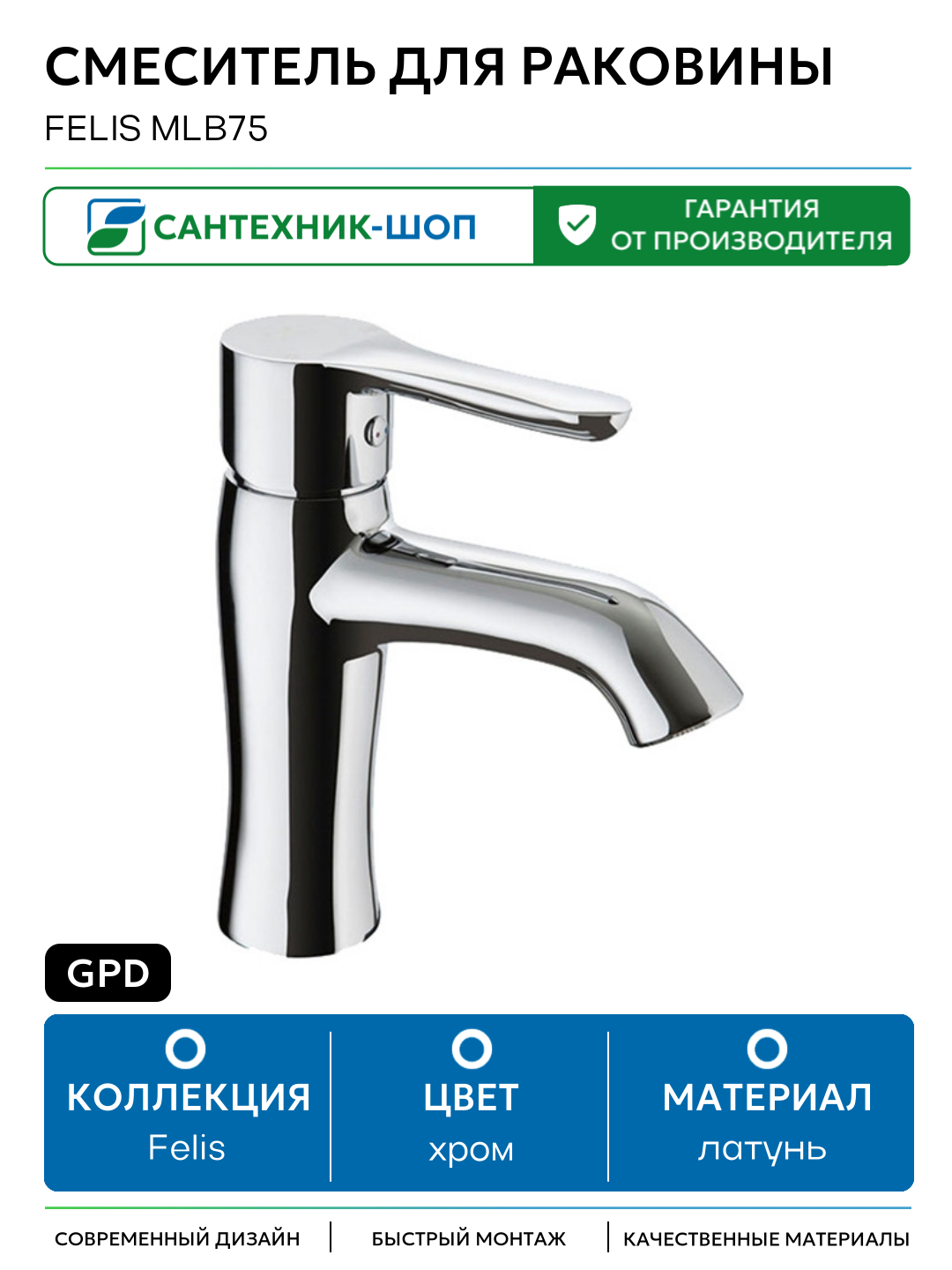 Купить Смеситель для раковины GPD Felis MLB75 Хром латунь Турция с доставкой по всей России. Смеситель для раковины GPD Felis MLB75 Хром латунь Турция: сравнение цен, характеристики, фото, актуальное наличие и цены.