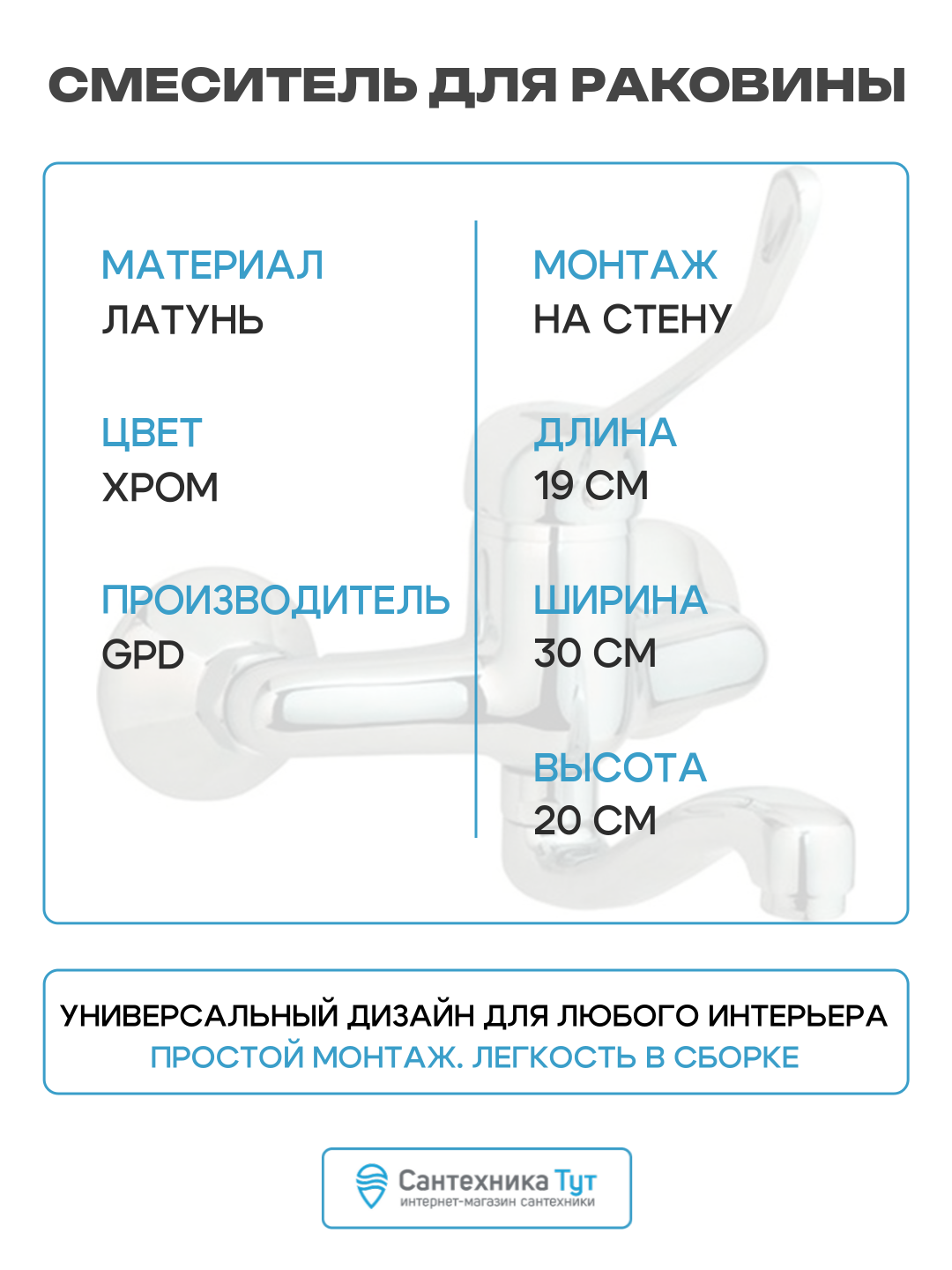 Купить Смеситель для раковины GPD MAL45 Хром латунь на стену Турция с доставкой по всей России. Смеситель для раковины GPD MAL45 Хром латунь на стену Турция: сравнение цен, характеристики, фото, актуальное наличие и цены.