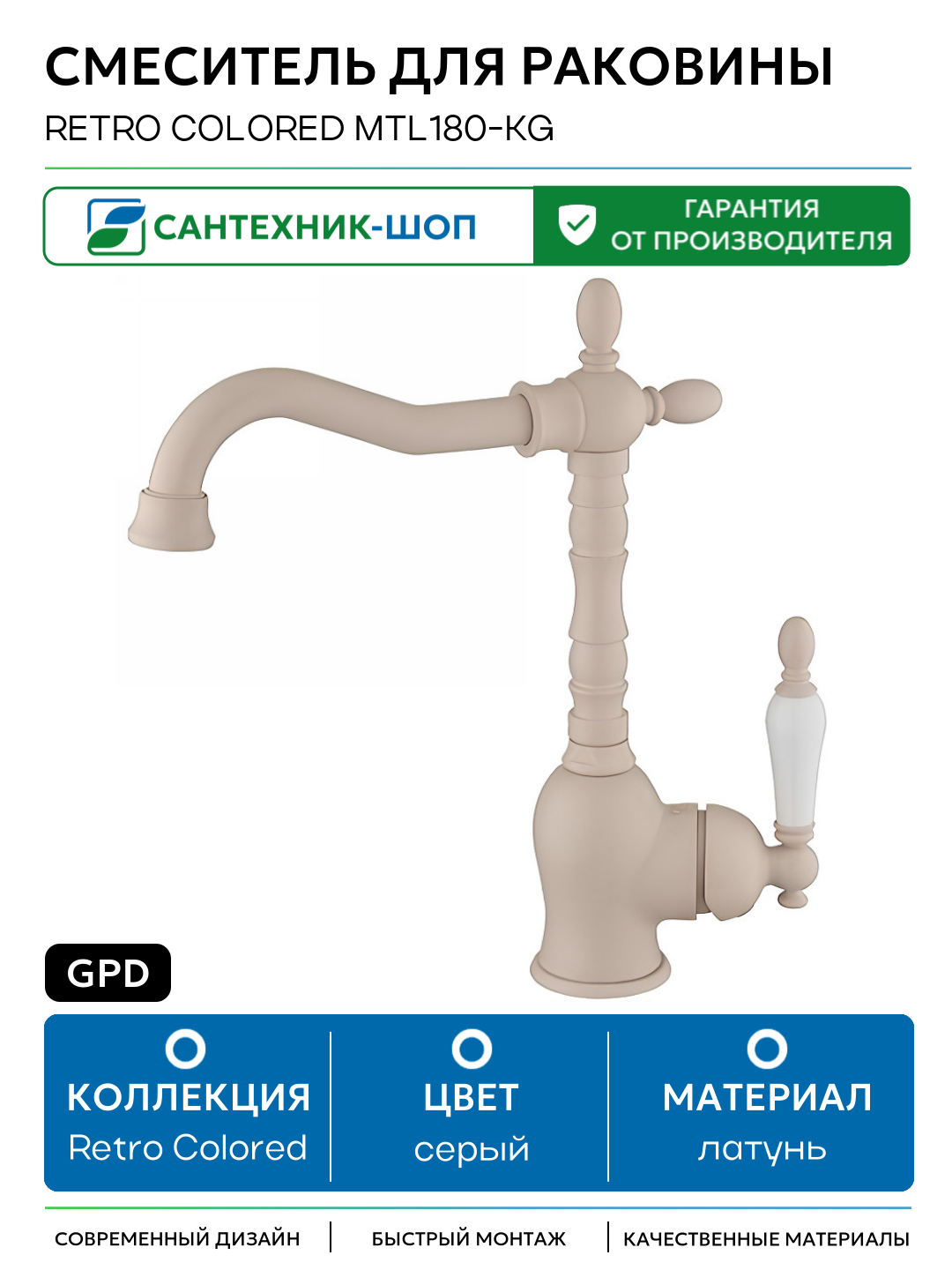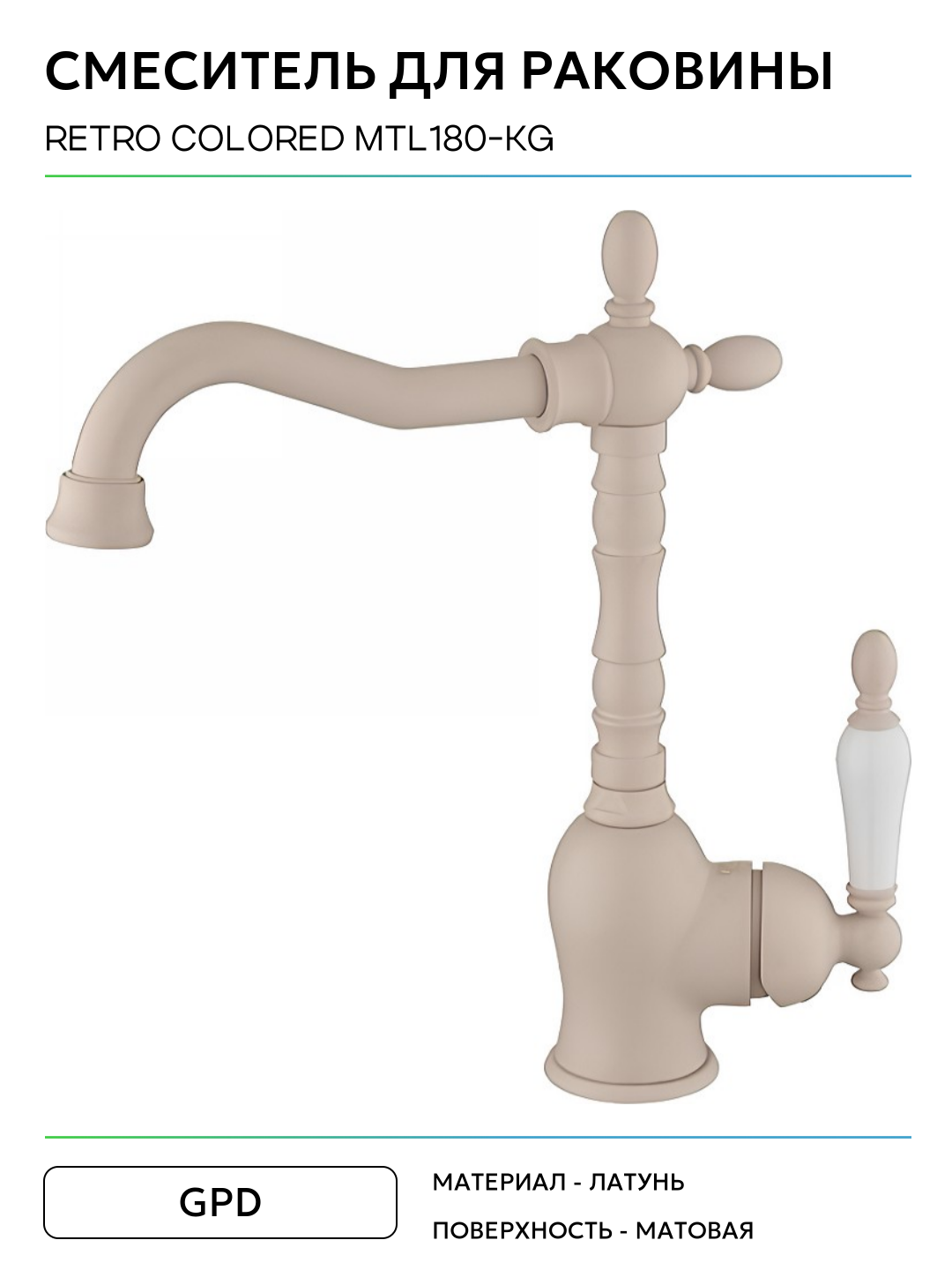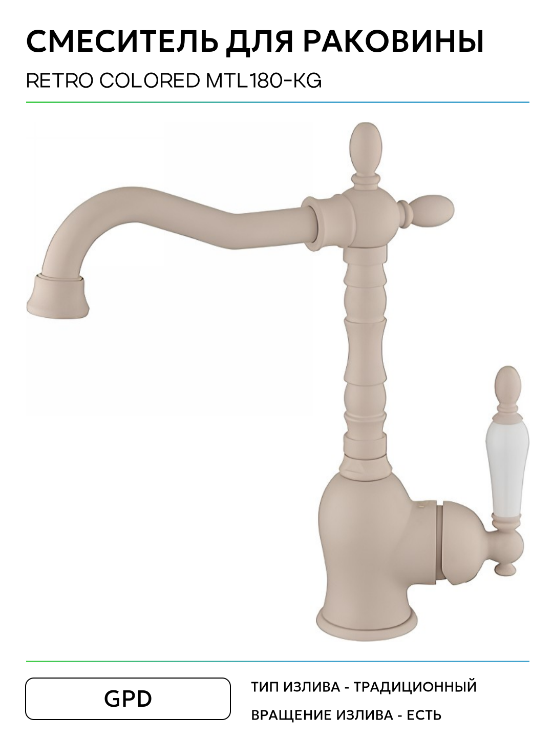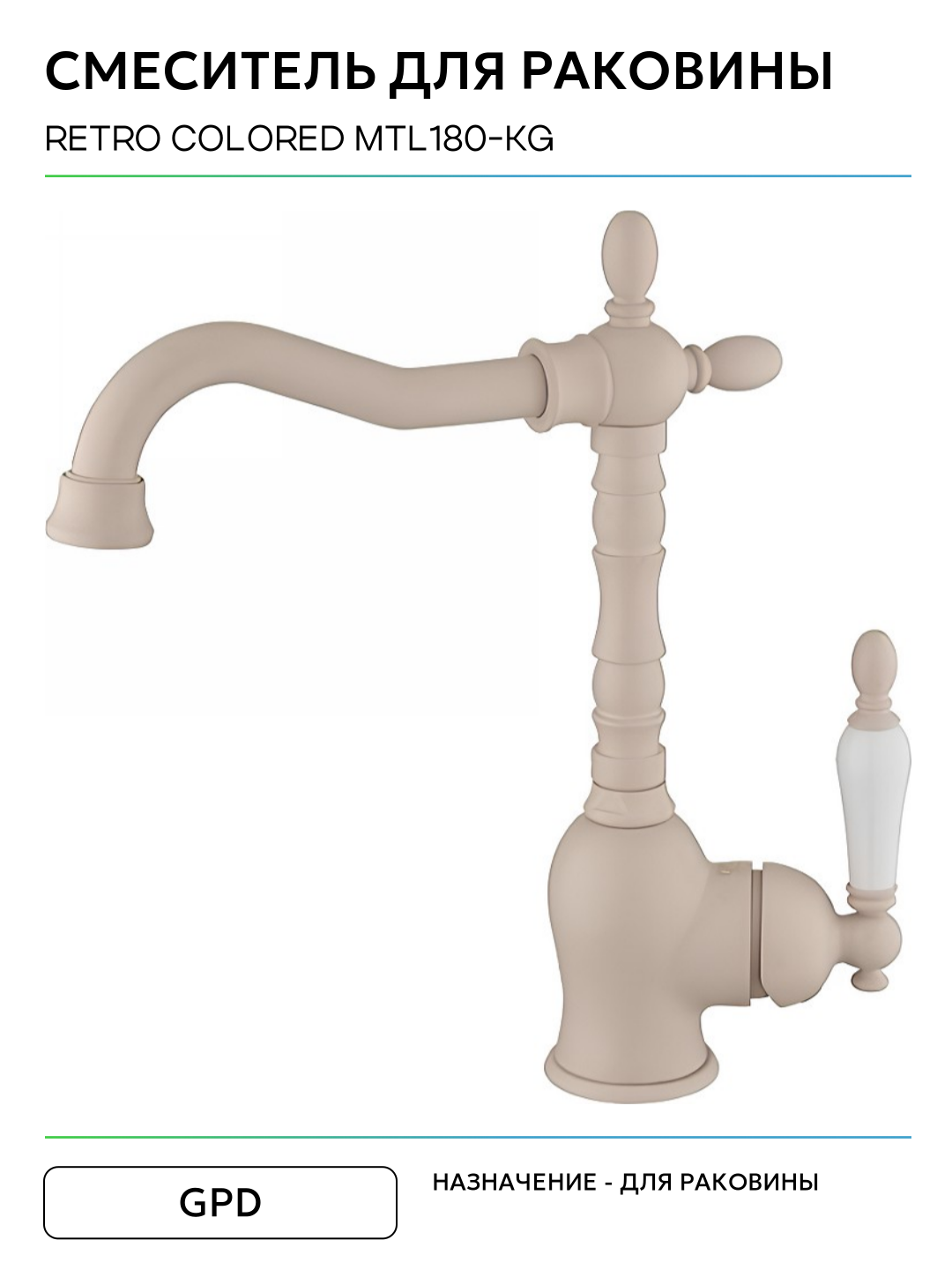 Смеситель для раковины GPD Retro Colored MTL180-KG Кремовый гранит латунь Турция: сравнение цен, характеристики, фото, актуальное наличие и цены.