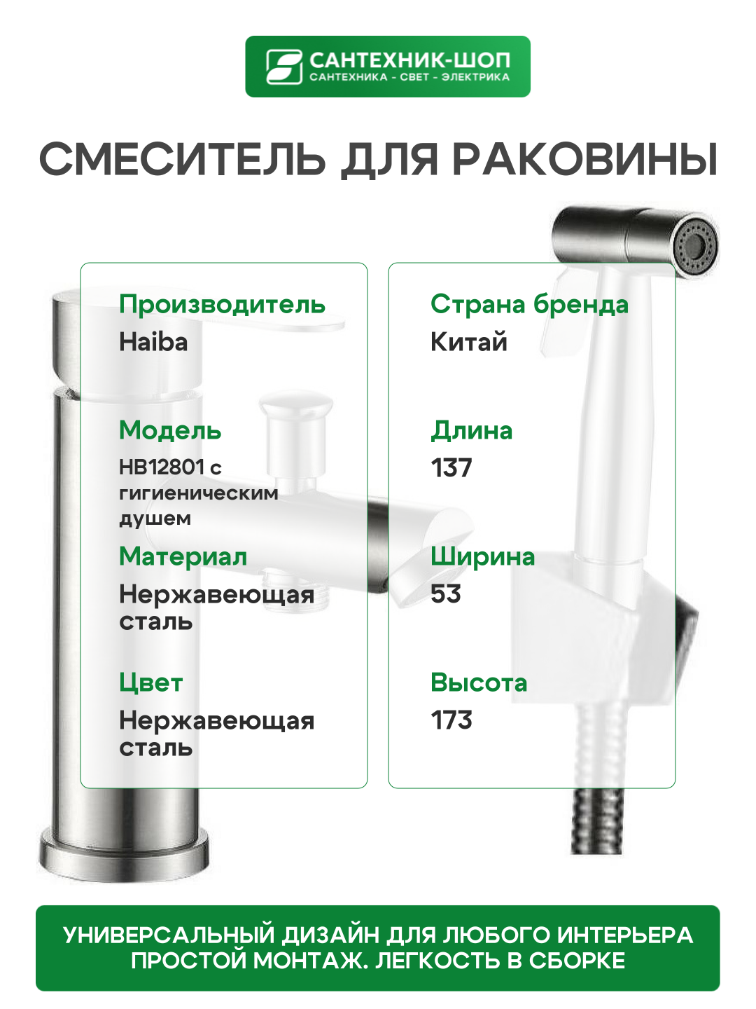 Смеситель для раковины Haiba HB12801 с гигиеническим душем Нержавеющая сталь нержавеющая сталь: сравнение цен, характеристики, фото, актуальное наличие и цены.