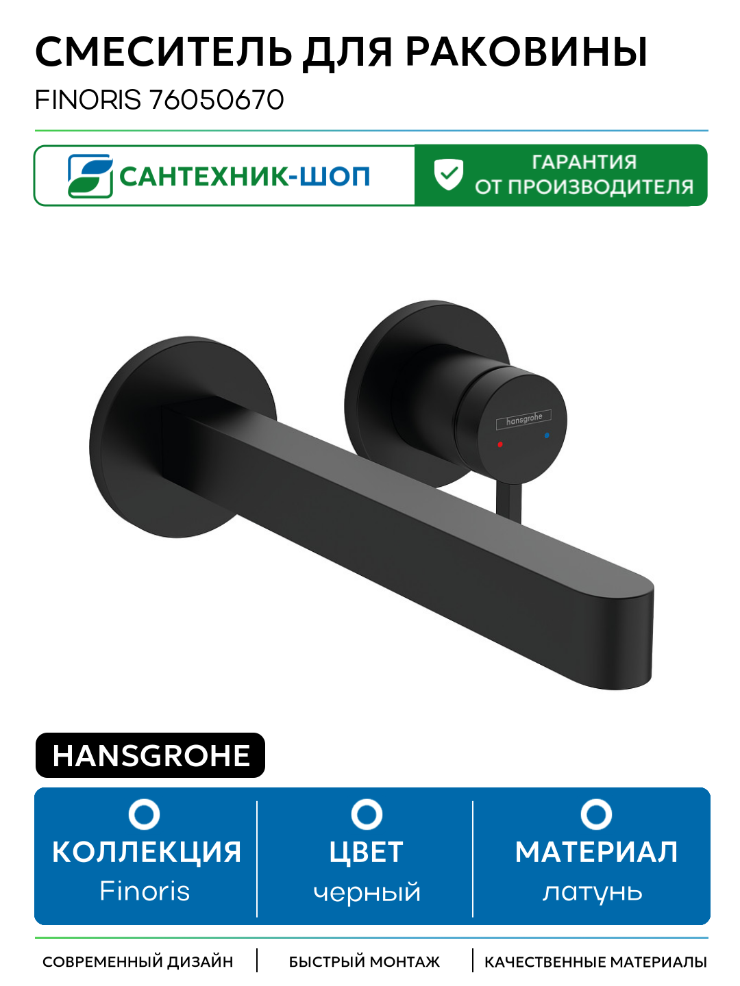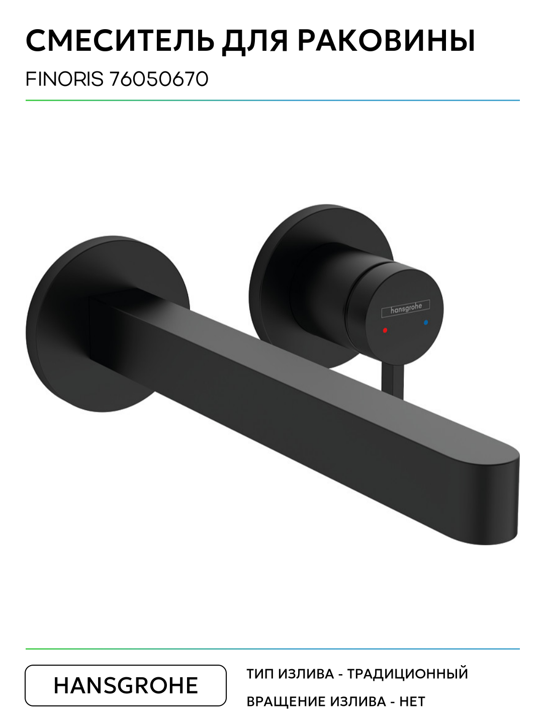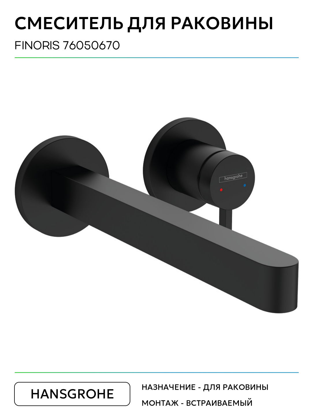 Смеситель для раковины hansgrohe Finoris скрытого монтажа, настенный, внешняя часть 76050670, матовый черный: сравнение цен, характеристики, фото, актуальное наличие и цены.