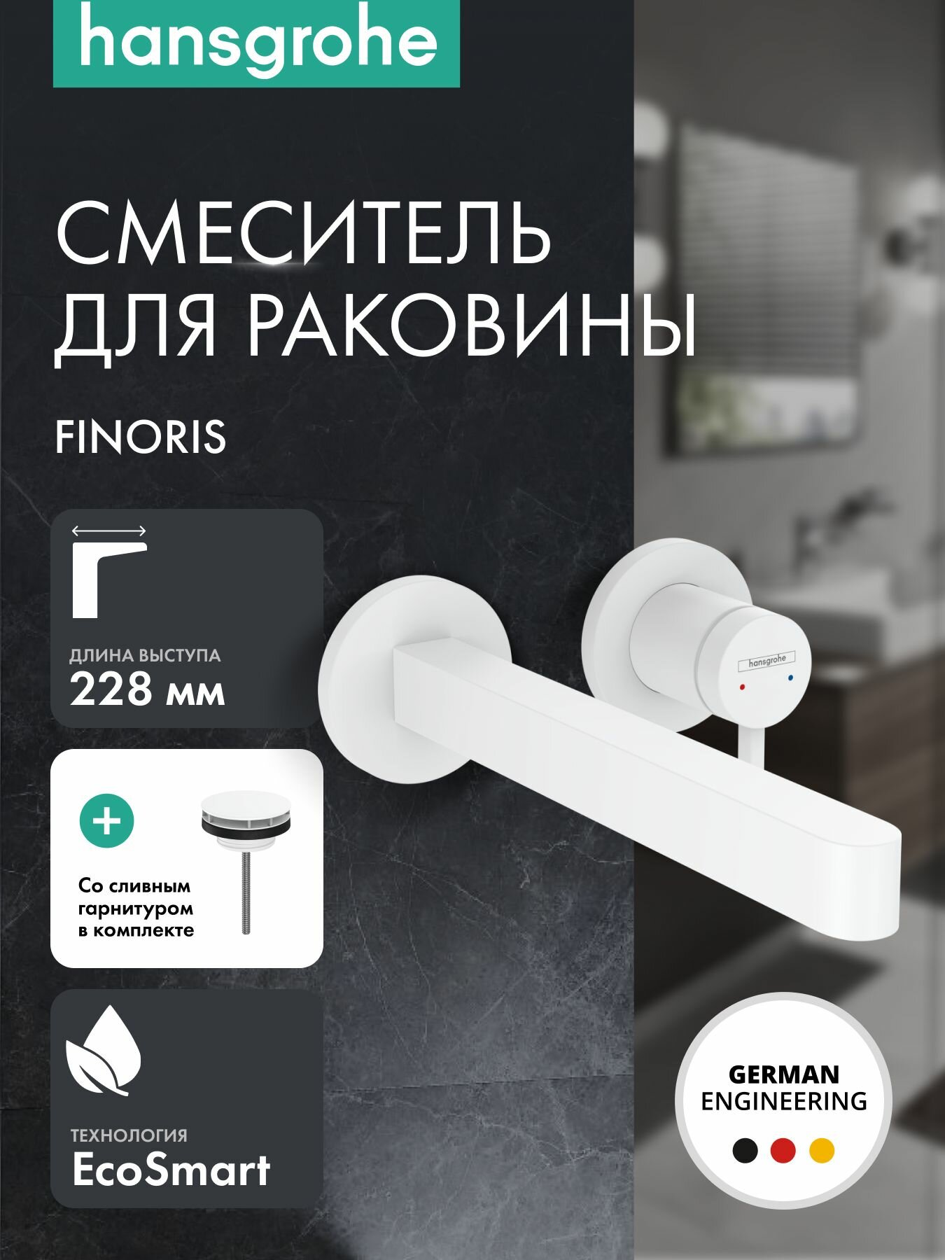 Смеситель для раковины hansgrohe Finoris скрытого монтажа, настенный, внешняя часть 76050700, матовый белый: сравнение цен, характеристики, фото, актуальное наличие и цены.