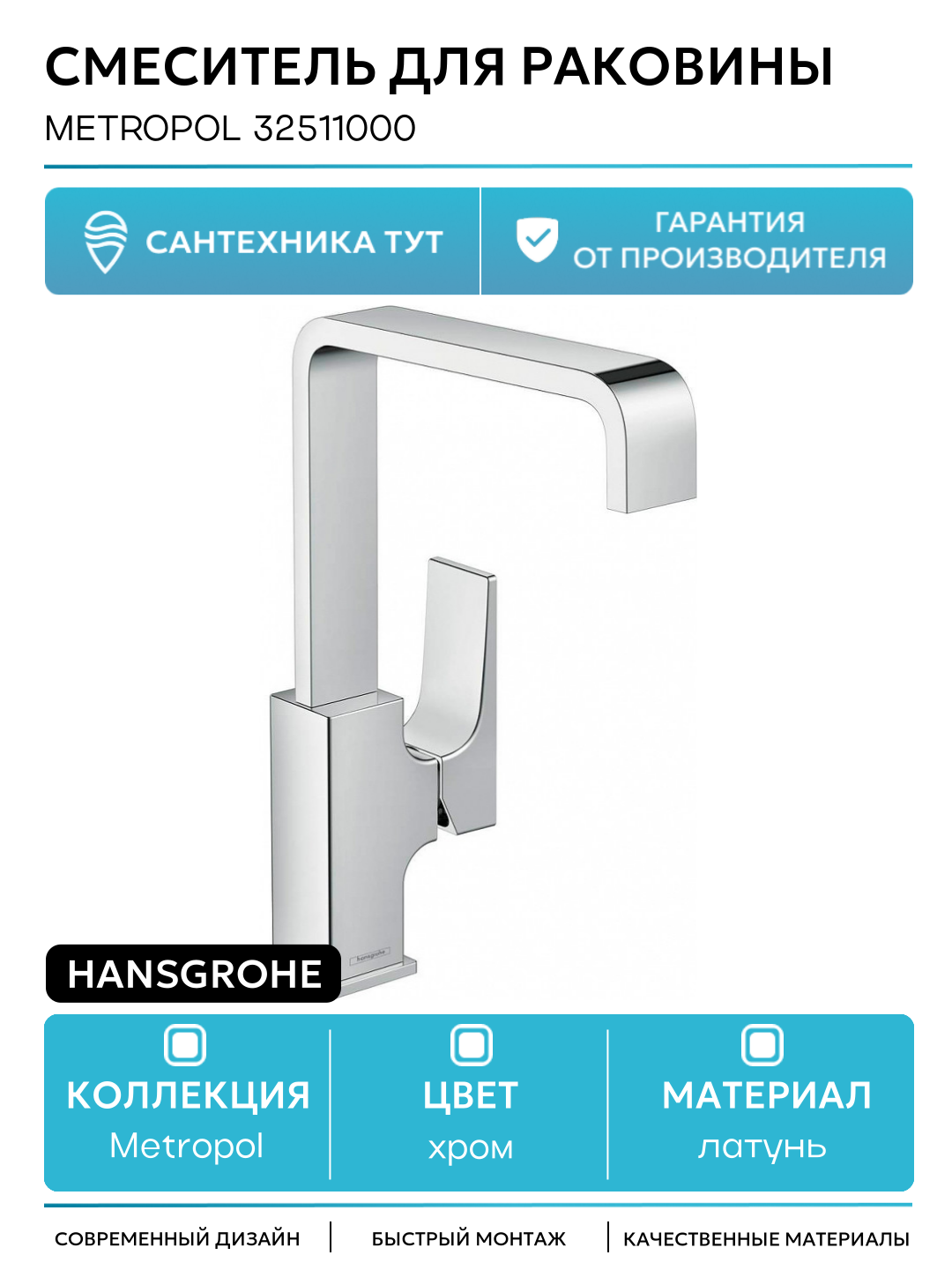Смеситель для раковины Hansgrohe Metropol 32511000 Хром латунь Германия: сравнение цен, характеристики, фото, актуальное наличие и цены.
