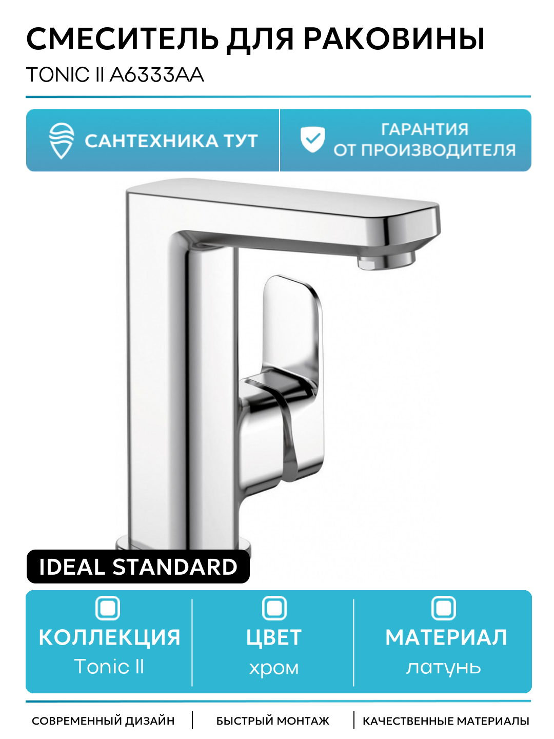 Смеситель для раковины Ideal Standard Tonic II A6333AA Хром латунь Германия: сравнение цен, характеристики, фото, актуальное наличие и цены.