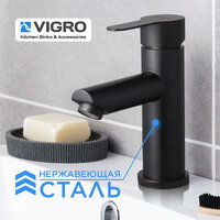 Смеситель для раковины из нержавеющей стали черный матовый VIGRO VG1081-7: сравнение цен, характеристики, фото, актуальное наличие и цены.
