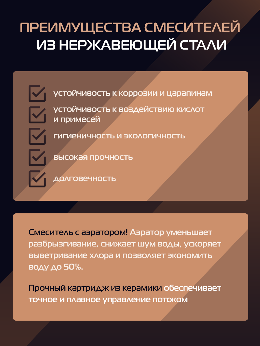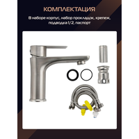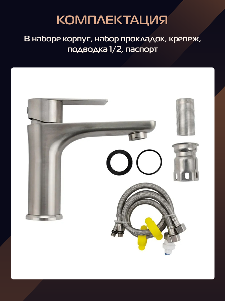 | Комплектация | Смеситель, набор прокладок, крепеж, подводка, паспорт |