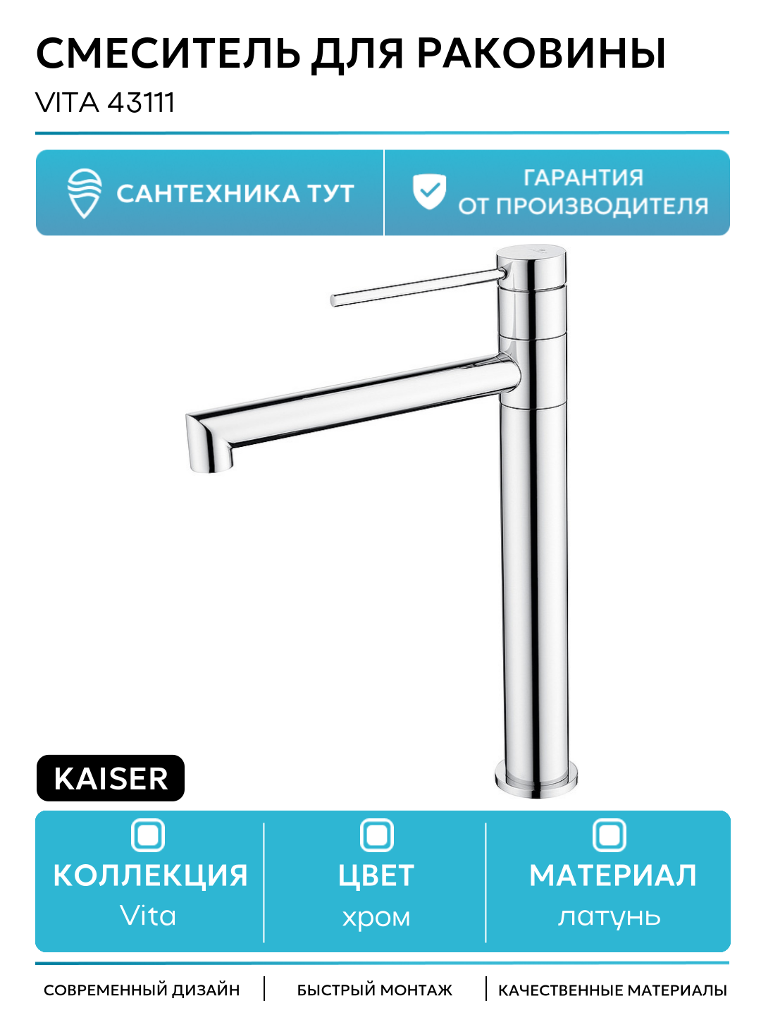 Смеситель Kaiser (Кайзер) Vita тюльпан для раковины хром (43111): сравнение цен, характеристики, фото, актуальное наличие и цены.