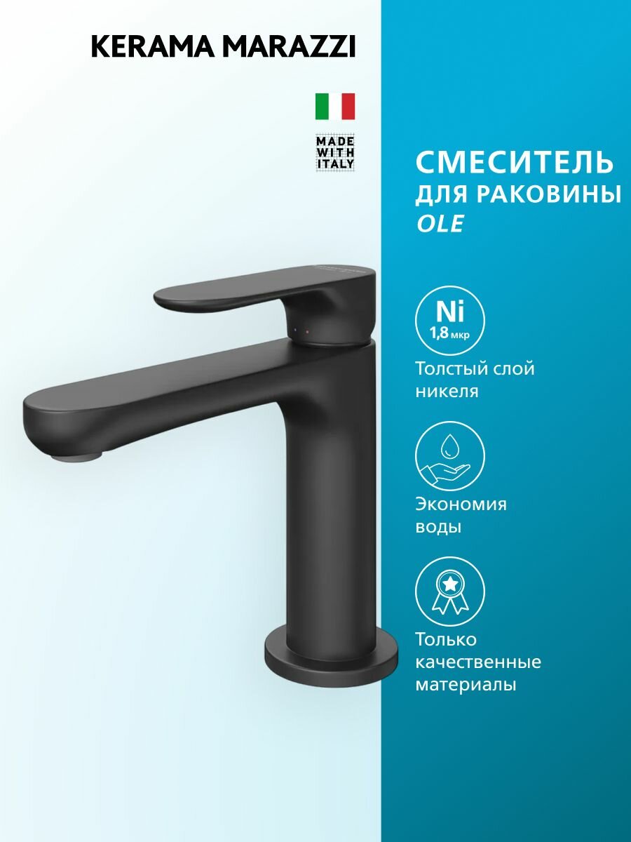 Смеситель KERAMA MARAZZI OLE для раковины, однорычажный, без донного клапана, 3/8, матовый черный, 69412KM.01.093: сравнение цен, характеристики, фото, актуальное наличие и цены.