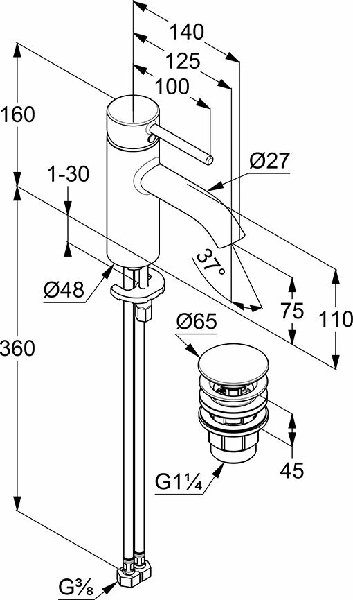 Смеситель для раковины Kludi Bozz 382660576 с донным клапаном, хром, немецкий: сравнение цен, характеристики, фото, актуальное наличие и цены.