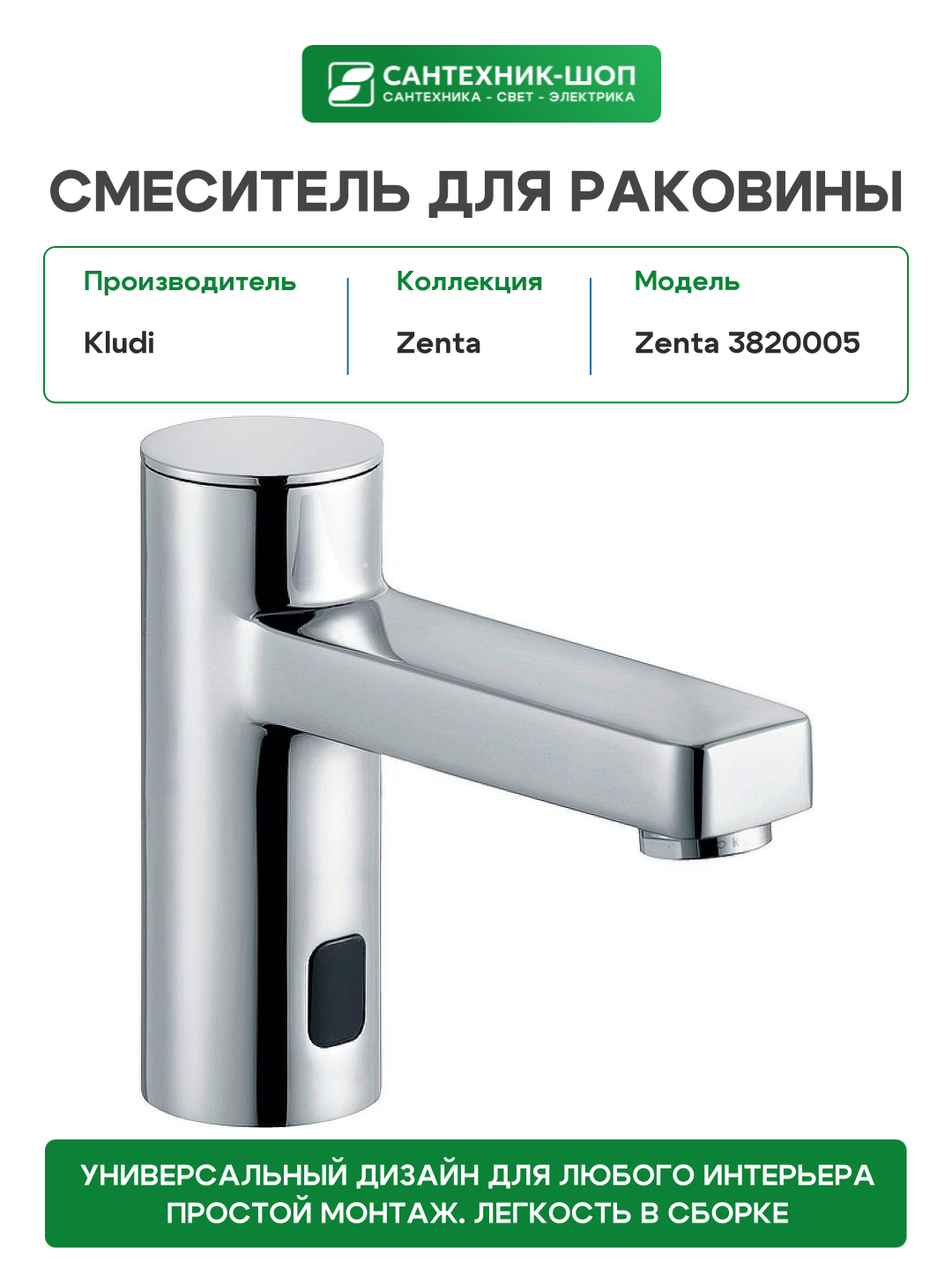 Смеситель для раковины Kludi Zenta 3820005 Хром латунь: сравнение цен, характеристики, фото, актуальное наличие и цены.