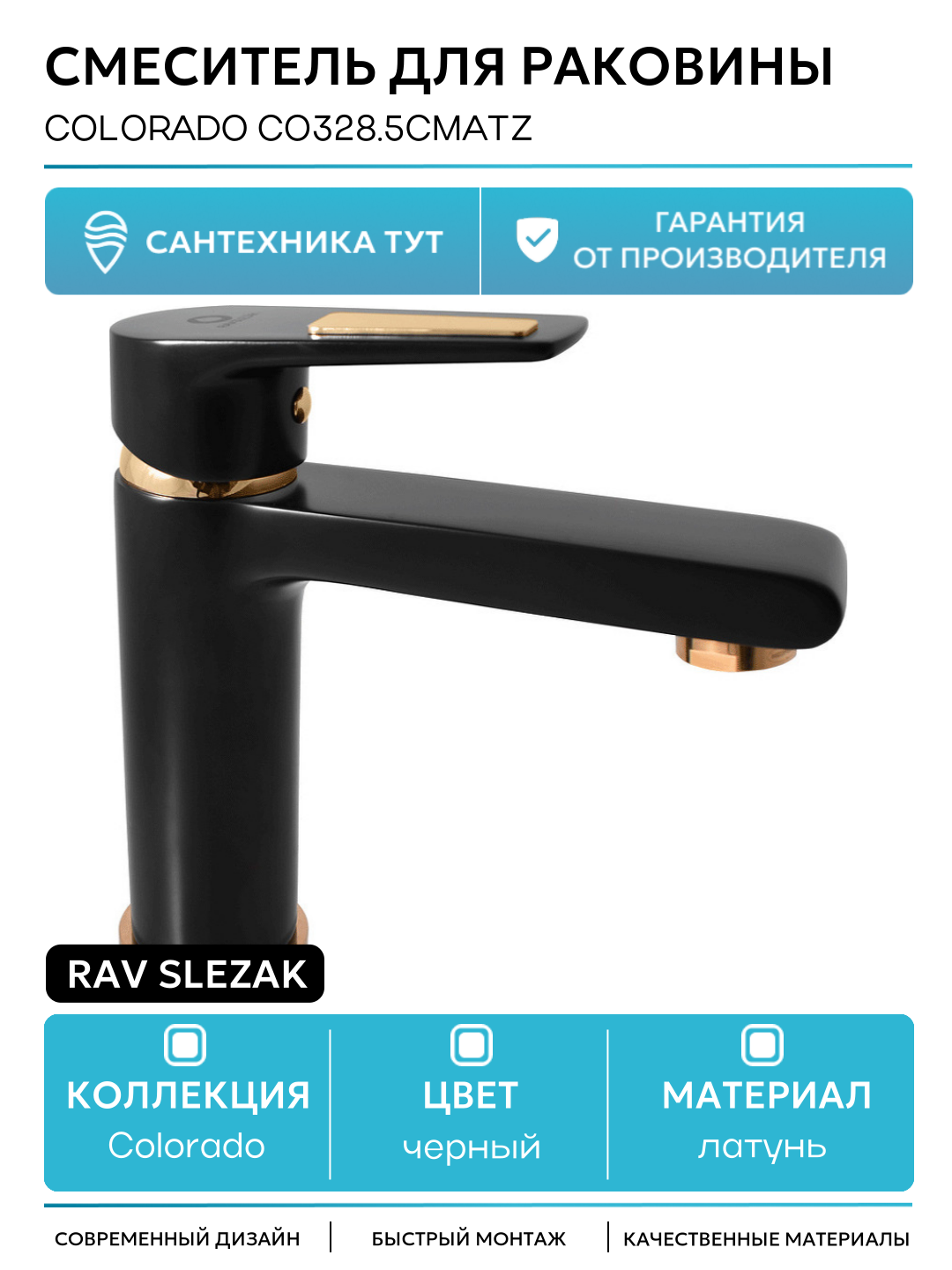 Смеситель для раковины Rav Slezak Colorado CO328.5CMATZ Черный матовый Золото латунь Чехия: сравнение цен, характеристики, фото, актуальное наличие и цены.