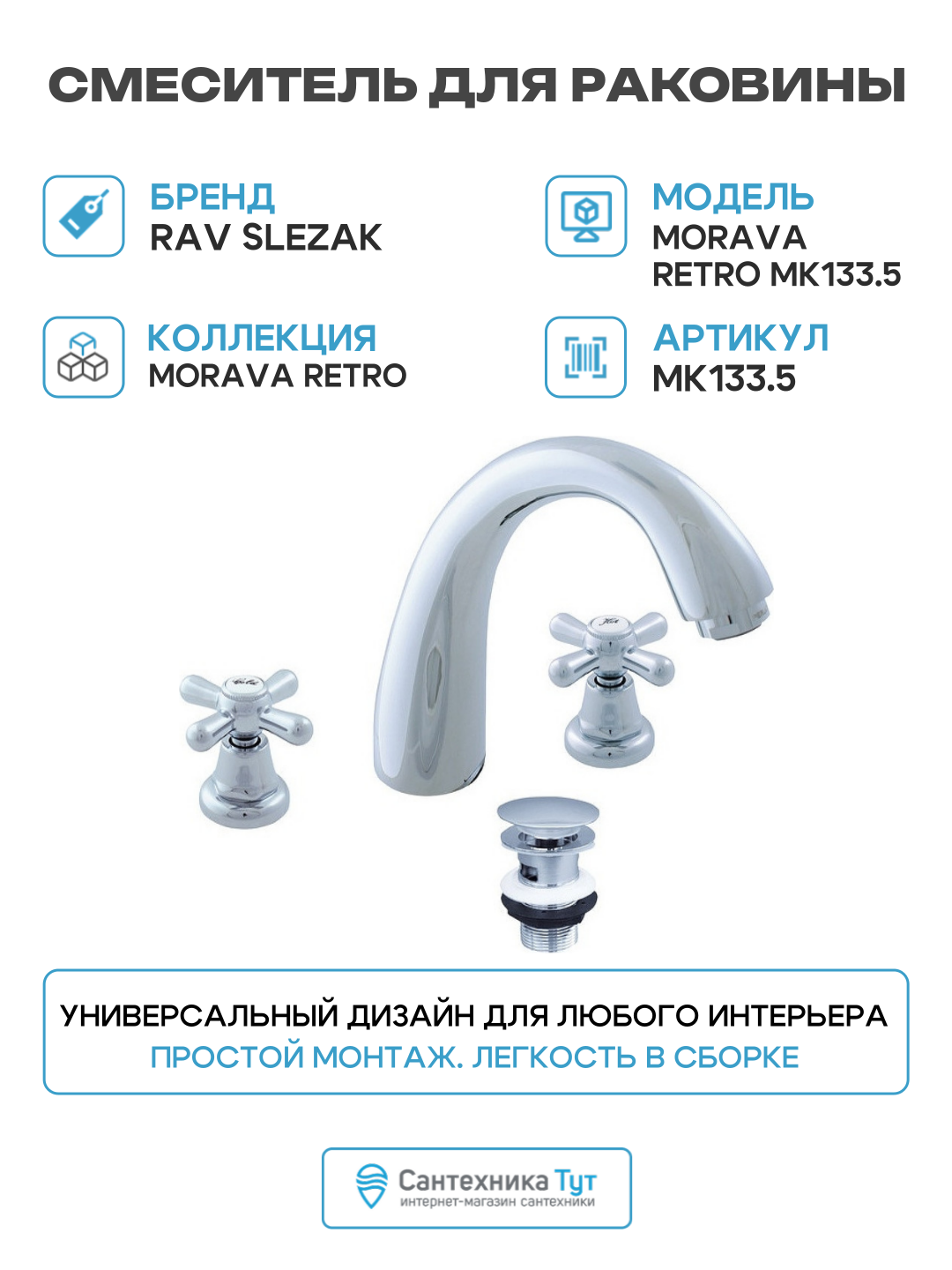 Смеситель для раковины Rav Slezak Morava retro MK133.5 Хром латунь Чехия: сравнение цен, характеристики, фото, актуальное наличие и цены.