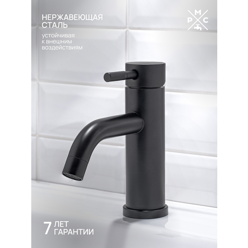 Смеситель РМС SUS128 для раковины выполнен из нержавеющей стали, что обеспечивает его долговечность и устойчивость к царапинам и перепадам температур. Черный матовый цвет придает смесителю стильный и современный вид.