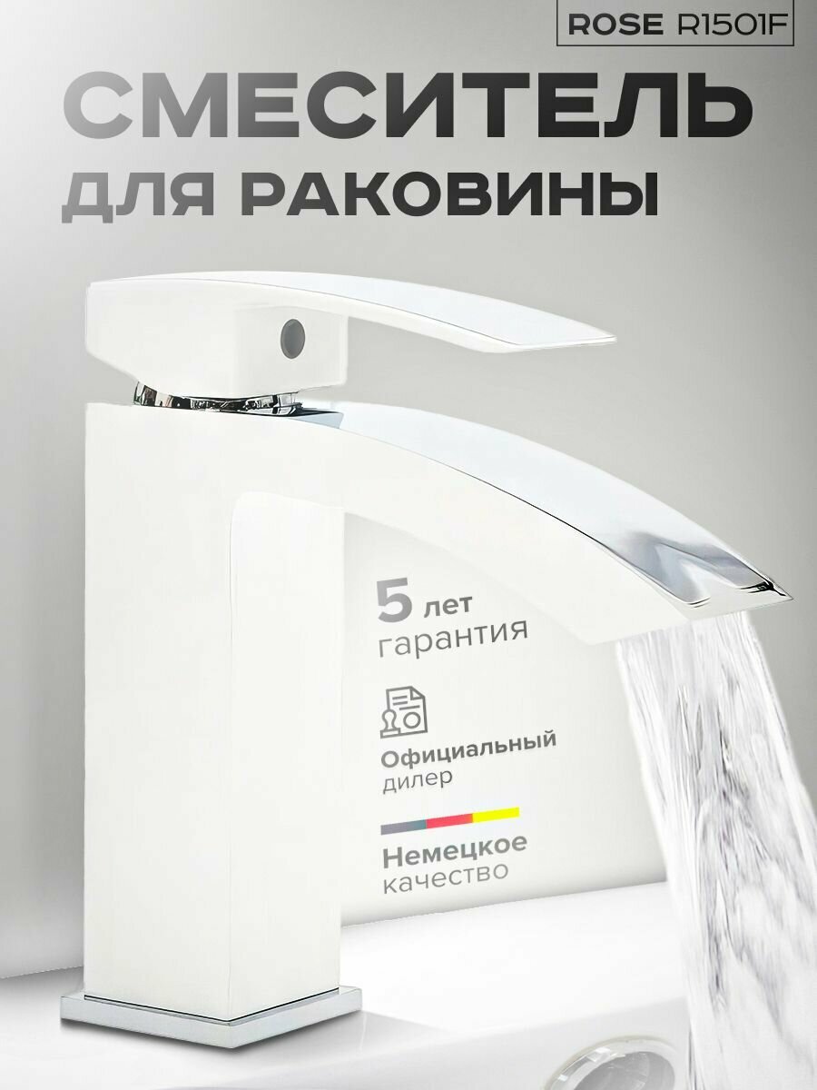 Смеситель для раковины Rose R1501F белый: сравнение цен, характеристики, фото, актуальное наличие и цены.