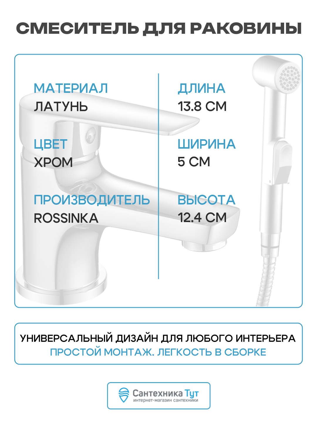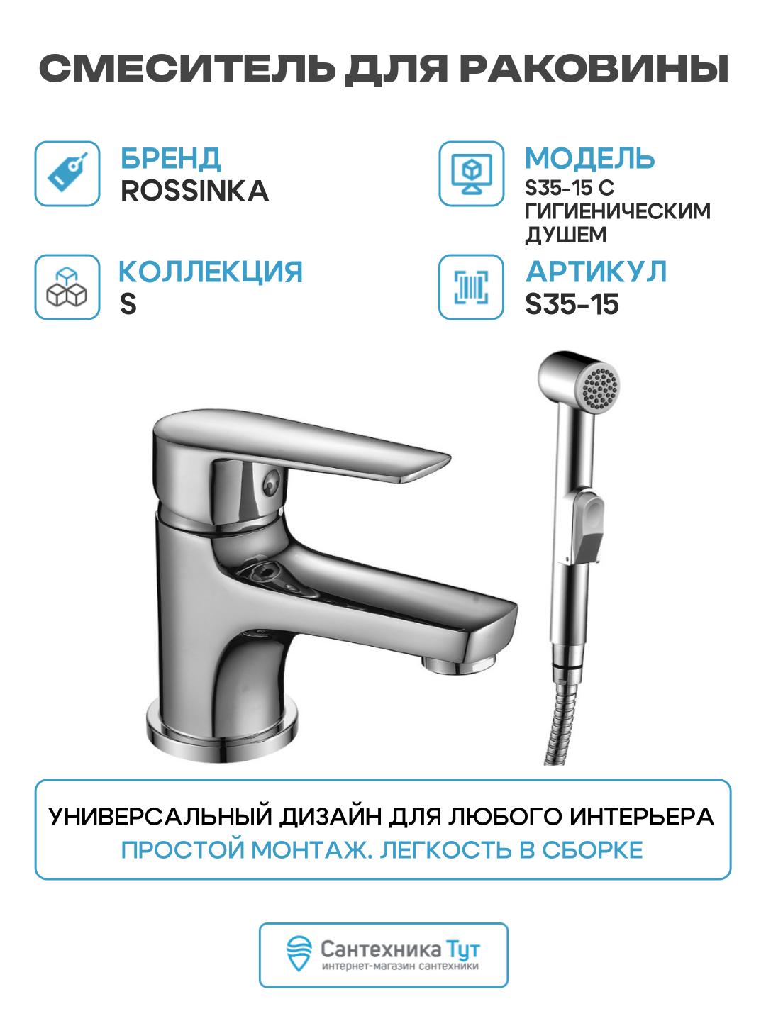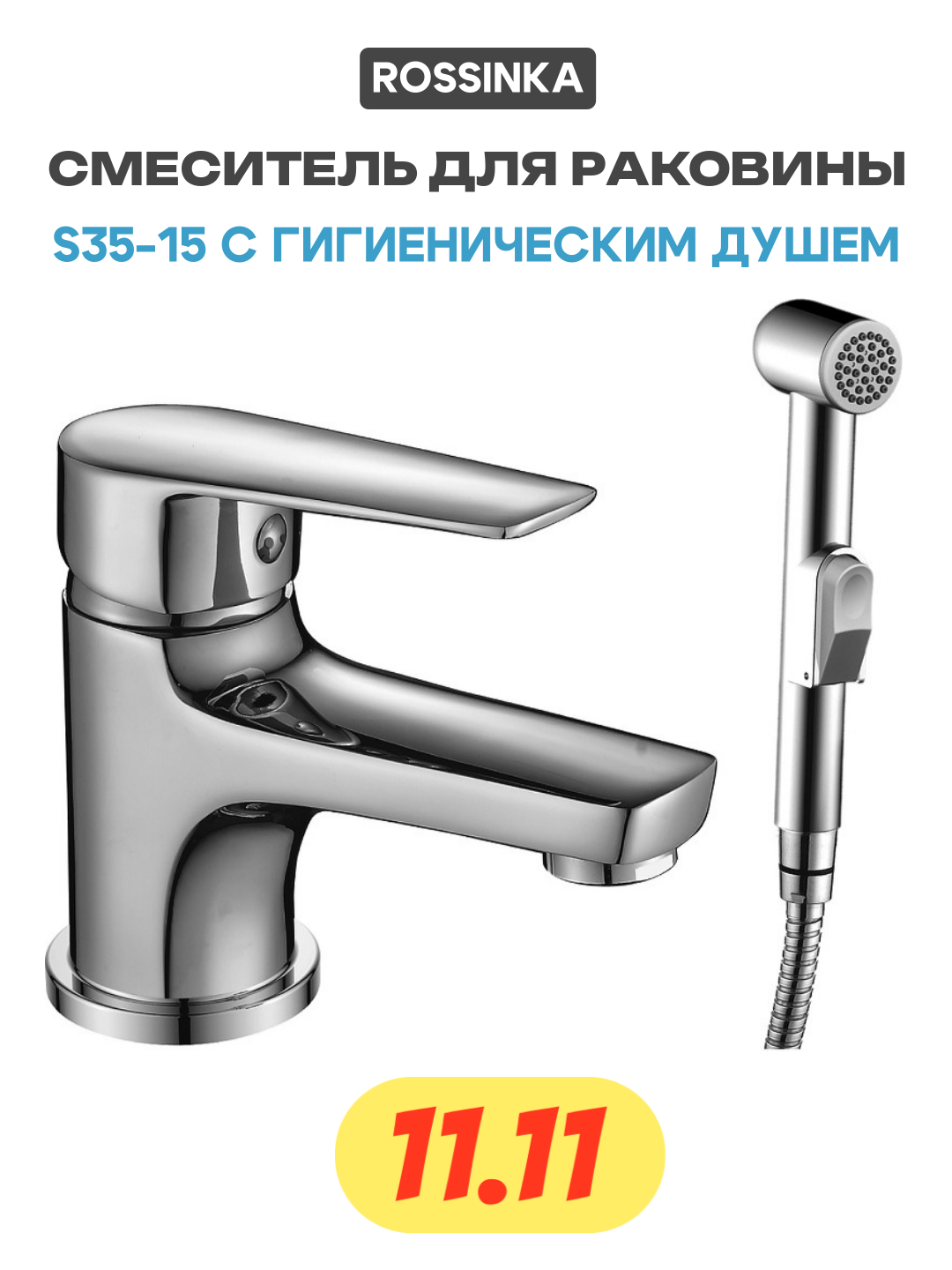 Смеситель для раковины Rossinka S35-15 с гигиеническим душем Хром латунь Китай: сравнение цен, характеристики, фото, актуальное наличие и цены.