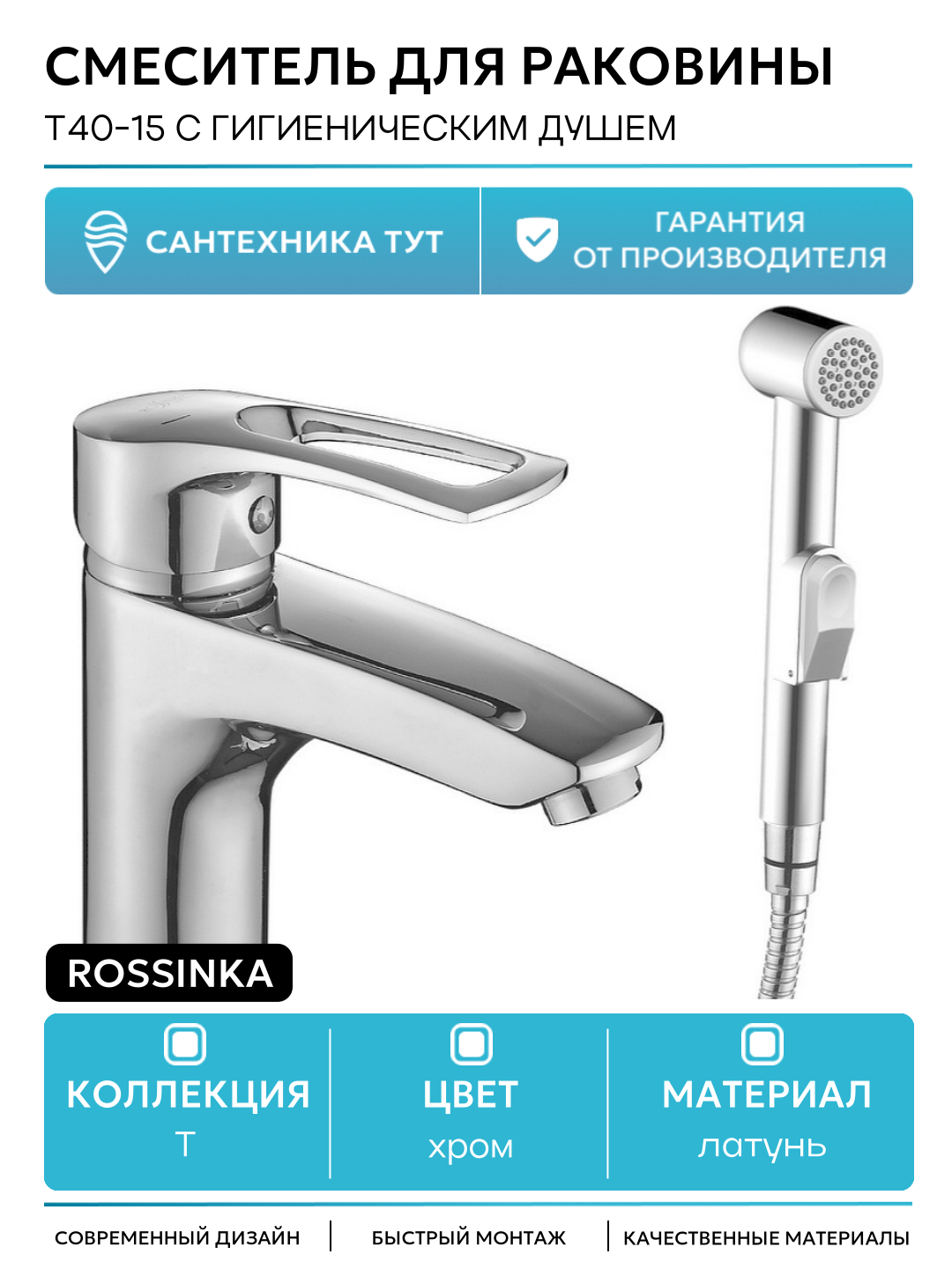 Смеситель для раковины Rossinka T40-15 с гигиеническим душем Хром: сравнение цен, характеристики, фото, актуальное наличие и цены.