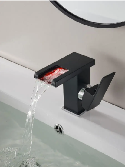Смеситель для раковины с каскадным изливом и подсветкой Bono Mini Black черный, кран для ванной из нержавеющей стали