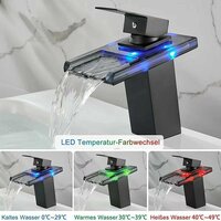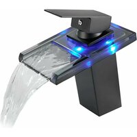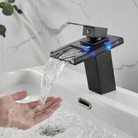Купить Смеситель для раковины с подсветкой и каскадным изливом Reji Black черный матовый, кран для ванной из нержавеющей стали с доставкой по всей России.