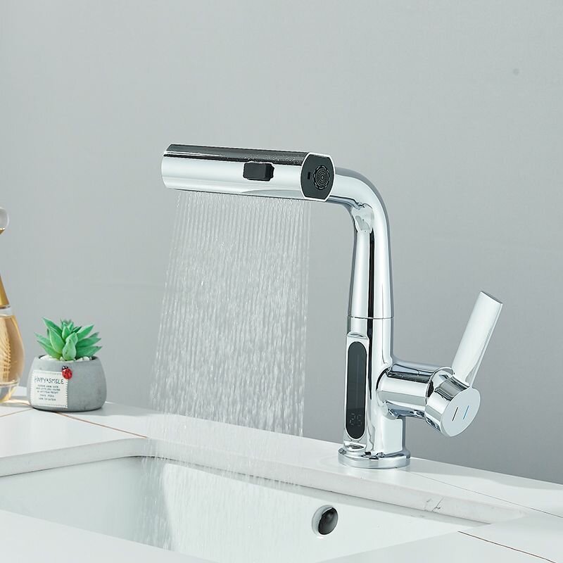 Смеситель для раковины с выдвижным изливом в виде водопада и подъемным механизмом. экран для отображения температуры: сравнение цен, характеристики, фото, актуальное наличие и цены.