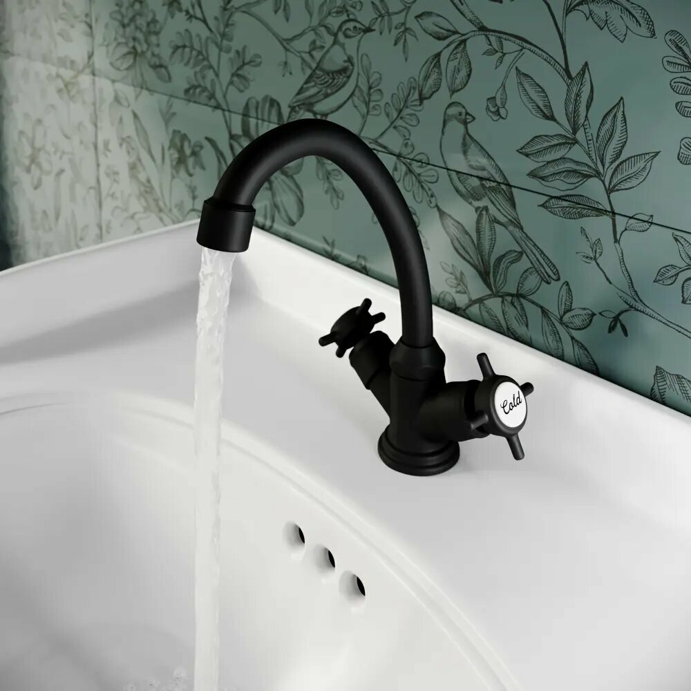 Смеситель для раковины Sensea «Mauna», двухвентильный, высокий излив, черный: сравнение цен, характеристики, фото, актуальное наличие и цены.