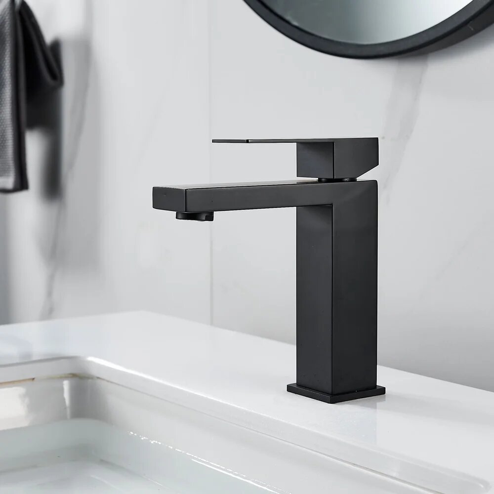 Смеситель для раковины Shevanik S7001H черный, матовый, кран для ванной в раковину, из нержавеющей стали, рычажный, с керамическим картриджем: сравнение цен, характеристики, фото, актуальное наличие и цены.