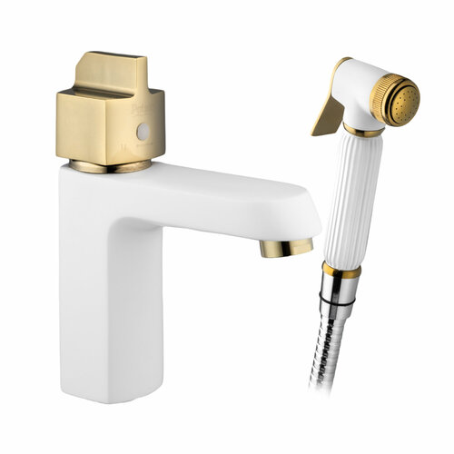Смеситель термостатический для раковины и биде белый матовый с золотой глянцевой термостатической ручкой - это высококачественный и надежный смеситель, предназначенный для установки в бытовых и общественных помещениях. Он оснащен термостатическим картриджем с функцией регулировки температуры воды, что обеспечивает комфорт и безопасность при использовании.
