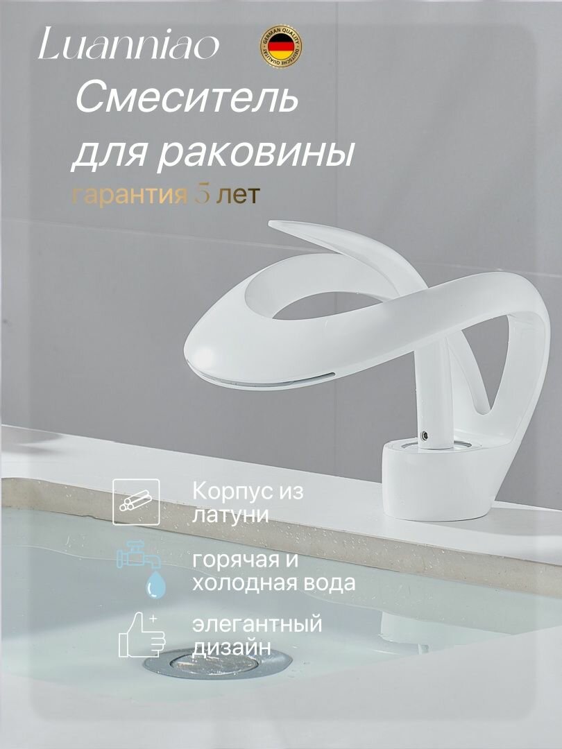 Смеситель для раковины/ умывальника/ монолитный кран для раковины в ванную Luanniao, из латуни, изящная дизайна, белый: сравнение цен, характеристики, фото, актуальное наличие и цены.