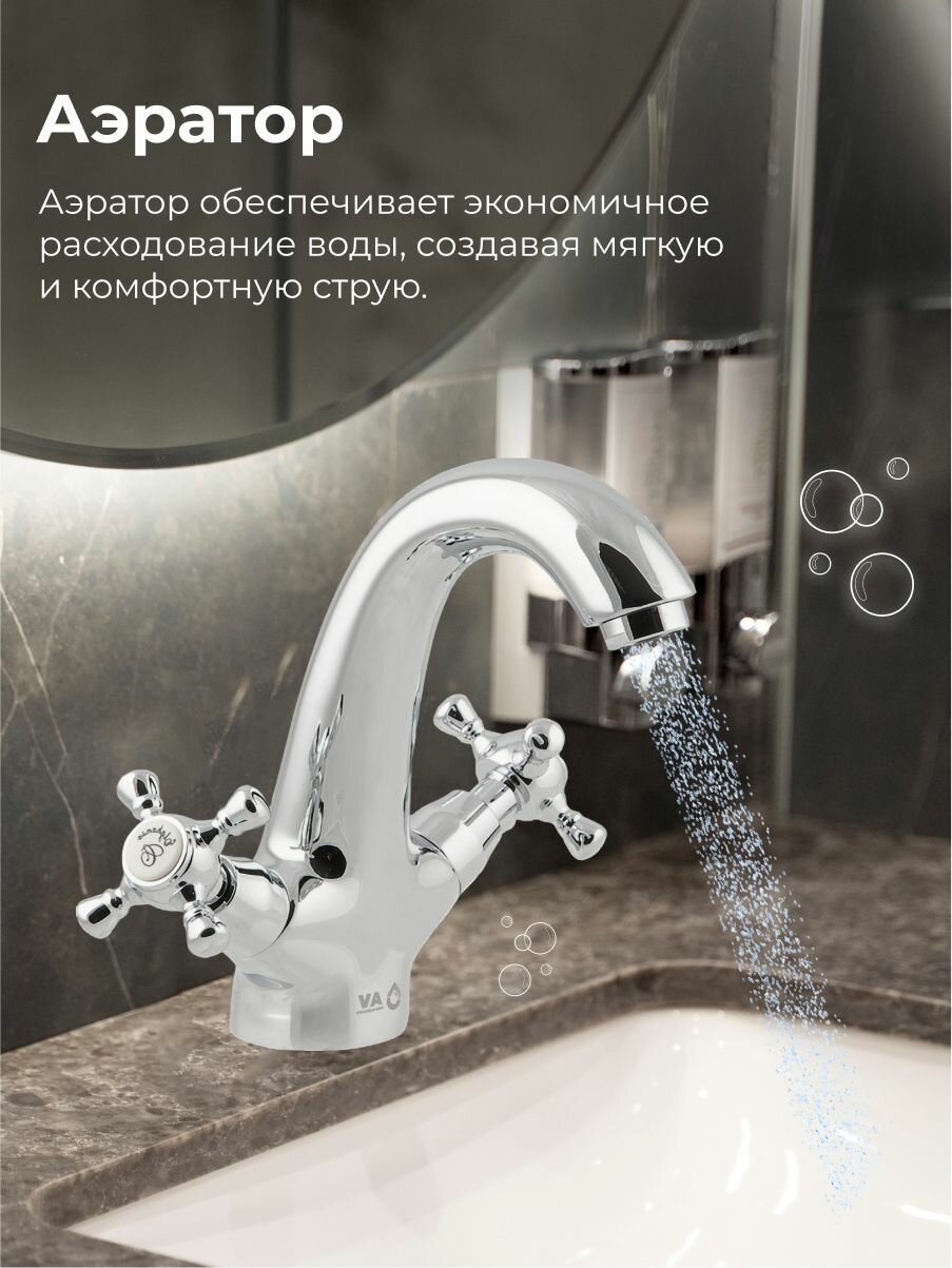 Купить Смеситель для раковины, умывальника с монолитным изливом латунь, серебристый хром AV Engineering (AVQNM1-A331-291) с доставкой по всей России.