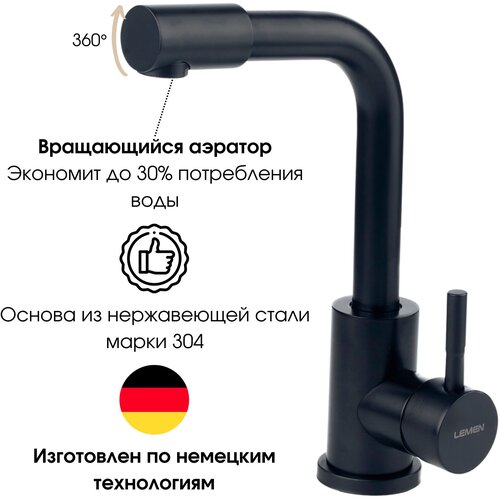 Смеситель для раковины (умывальника) с поворотным изливом Lemen, рычажный, нержавеющая сталь, черный: сравнение цен, характеристики, фото, актуальное наличие и цены.