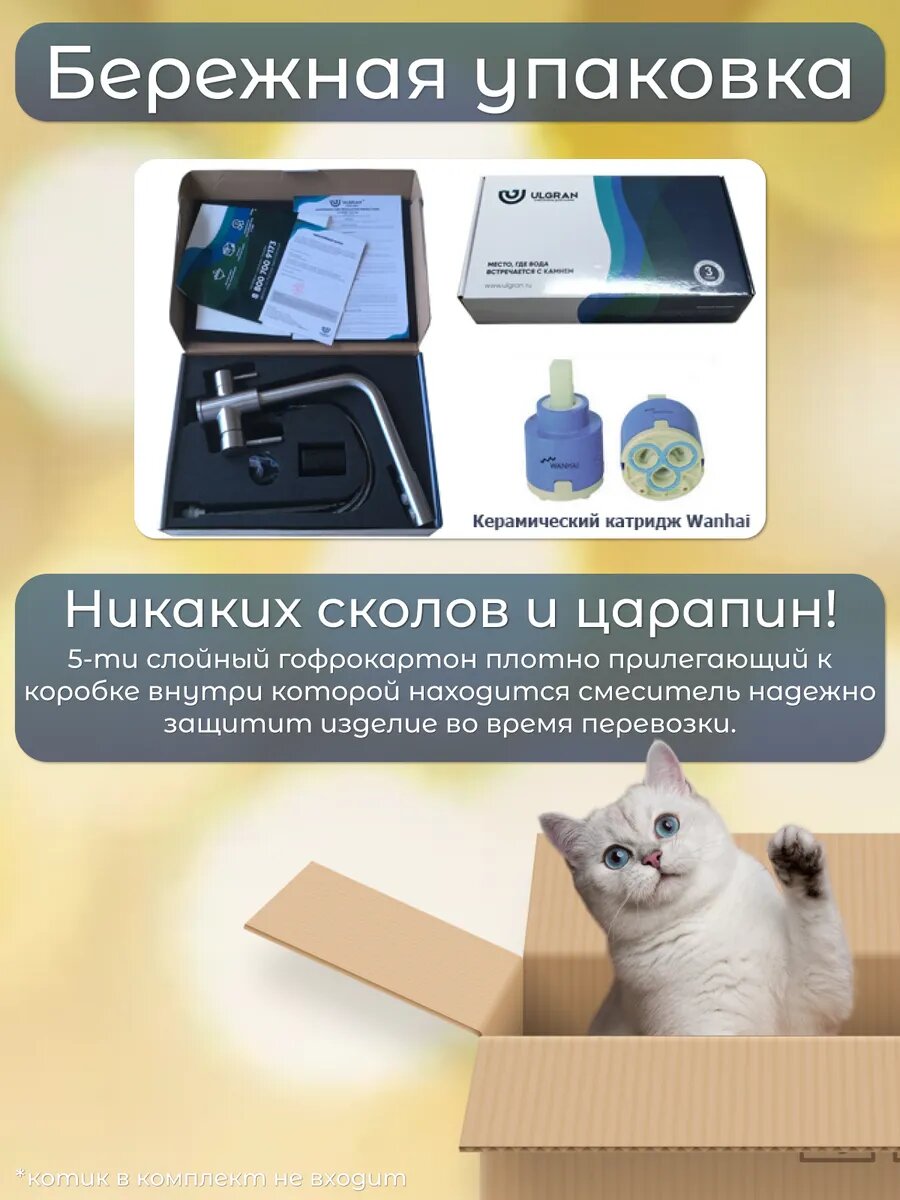 ULGRAN U-016 - высокоэргономичный кухонный смеситель с дополнительным краном для подключения фильтрованной воды, оснащенный кран-буксой с керамическими пластинами. Реализован тройной подвод воды через один излив холодная, горячая и фильтрованная. Переход с одного подвода на другой производится поворотом рычага. Набор для соединения с фильтром входит в комплект . Система фильтрации приобретается дополнительно и монтируется под мойку, специальный индикатор сообщает о необходимости замены картриджа. Материал корпуса выполнен из высококачественной латуни, а окрашивание под "искусственный камень" в цвет мойки ULGRAN выполняется на собственном производстве, что позволяет идеально попасть в фирменный цвет ULGRAN. В качестве керамического картриджа используется известный бренд Wanhai диаметром 35 мм с высокой пропускной способностью в 500 тысяч циклов "открывания-закрывания". На подвижные части картриджа Wanhai нанесена специальная невымываемая силиконовая смазка, а керамические пластины изготовлены из 96% оксида алюминия, что, в сочетании с высоким качеством шлифовки обеспечивает долговечность, надежность, плавность хода рукоятки. Смеситель оборудован съемным пластиковым аэратором для экономии воды и поворотным изливом на 360 градусов. В комплектацию входят керамический картридж Wanhai, гибкая подводка, комплект крепежных элементов, кран-букса с керамическими пластинами для дополнительного излива для фильтрованной воды, набор для подсоединения фильтра питьевой воды (гибкая подводка + переходник-цанга), технический паспорт и гарантийный талон. Заводская гарантия составляет 3 года на материал корпуса, 1 год на комплектующие к смесителю и 1 год на материал покрытия.
