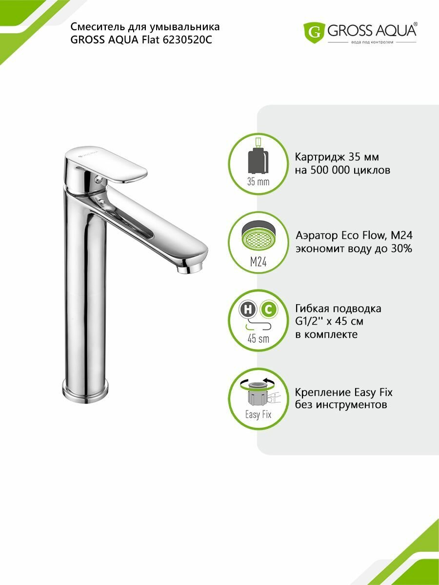 | Дополнительная информация | картридж Gross Aqua 35 мм; аэратор Eco Flow M24 с функцией снижения расхода воды |