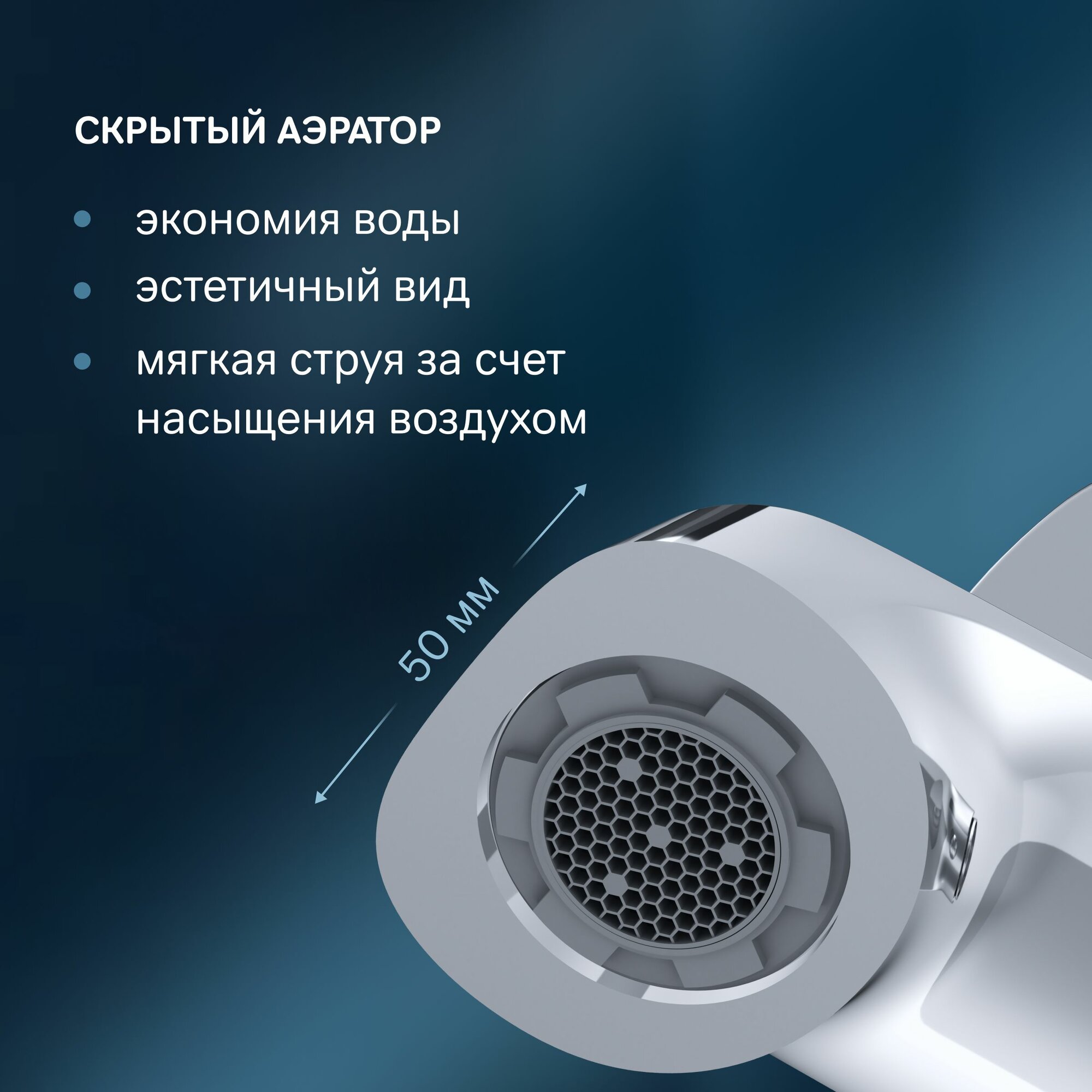 аэратор, встроенный фильтр, поворотный излив, система быстрого монтажа