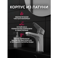 Смеситель для раковины в ванную из латуни монолитный Oasis L3013MG - это великолепный выбор для тех, кто ценит качество и стиль. Изготовленный из прочной латуни, данный смеситель обещает долгий срок службы и надежность. Его элегантный дизайн легко впишется в любой интерьер, придавая ванне особый шарм. Эта модель подходит для установки на большинство стандартных раковин и обеспечит вам удобство использования благодаря своим функциональным характеристикам. Управление потоком и температурой воды осуществляется с помощью одного рычага, что делает процесс простым и интуитивно понятным. Смеситель легко монтируется, что позволит сэкономить время и усилия при установке. Латунь не только придает ему прочность, но и защищает от коррозии, что особенно важно в условиях повышенной влажности. Эта модель станет не только практичным, но и стильным элементом вашей ванной комнаты. Благодаря высокому качеству и привлекательному дизайну, смеситель Oasis L3013MG станет отличным дополнением вашего пространства.