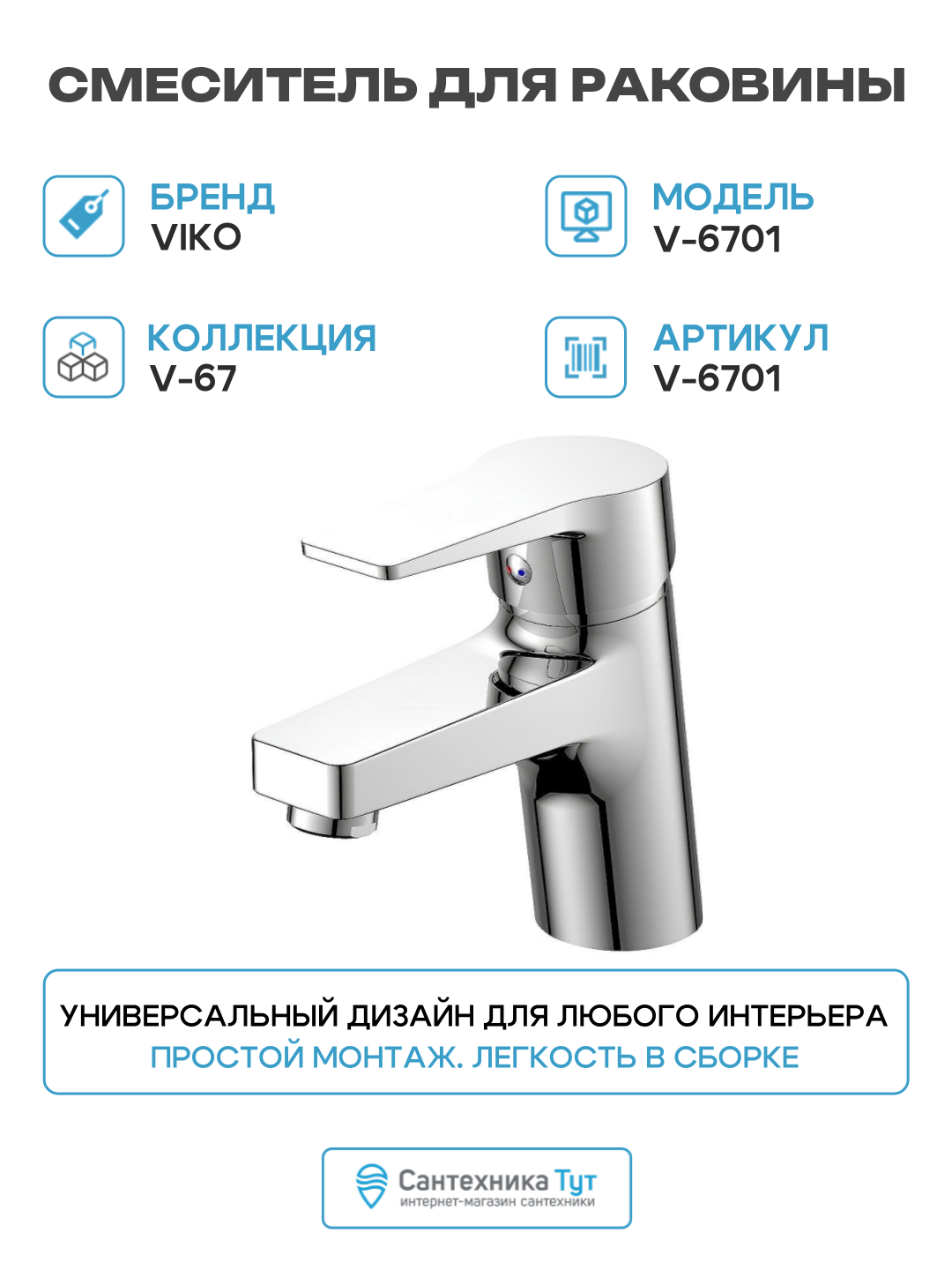 Смеситель для раковины Viko V-6701 Хром: сравнение цен, характеристики, фото, актуальное наличие и цены.