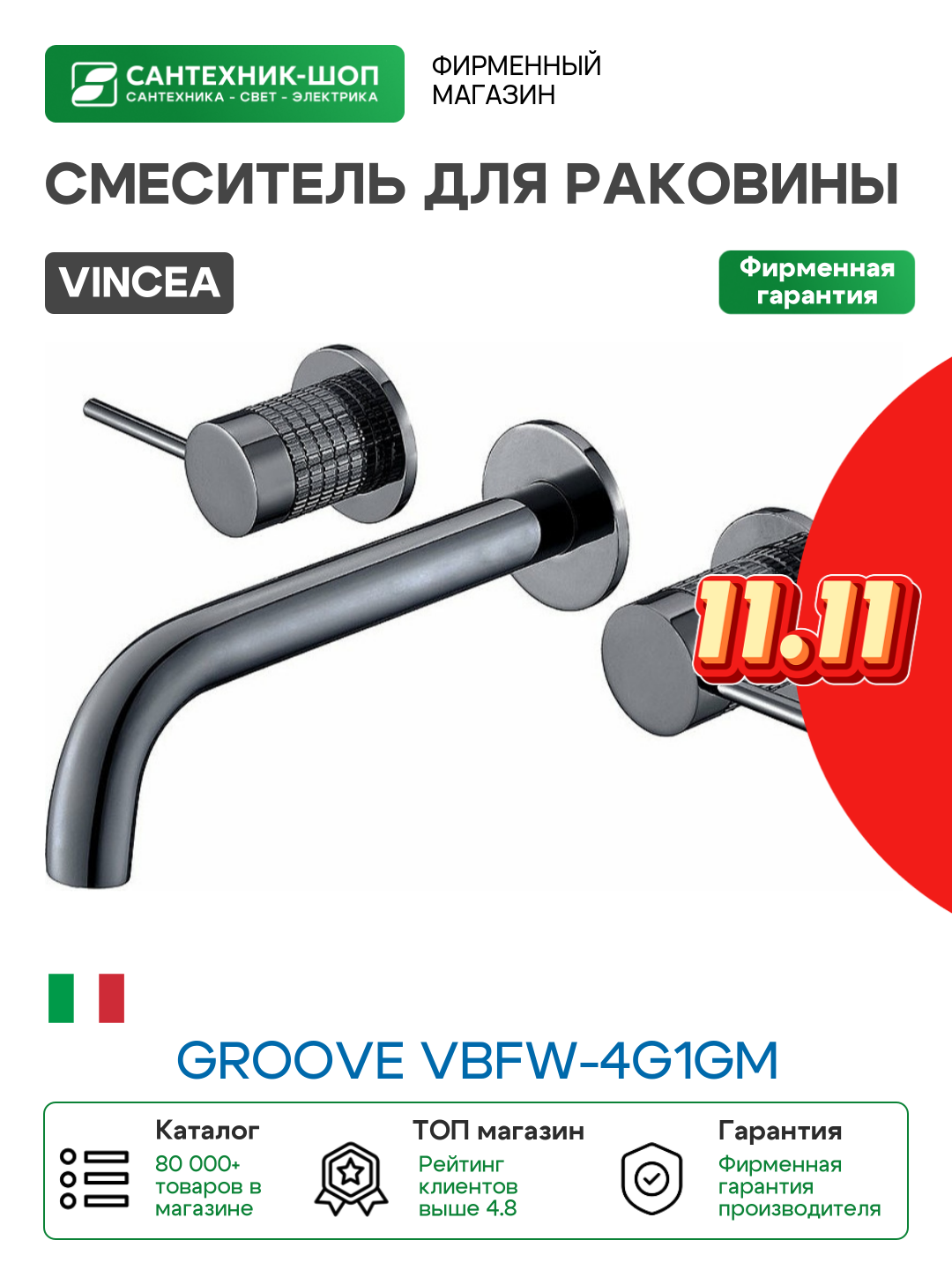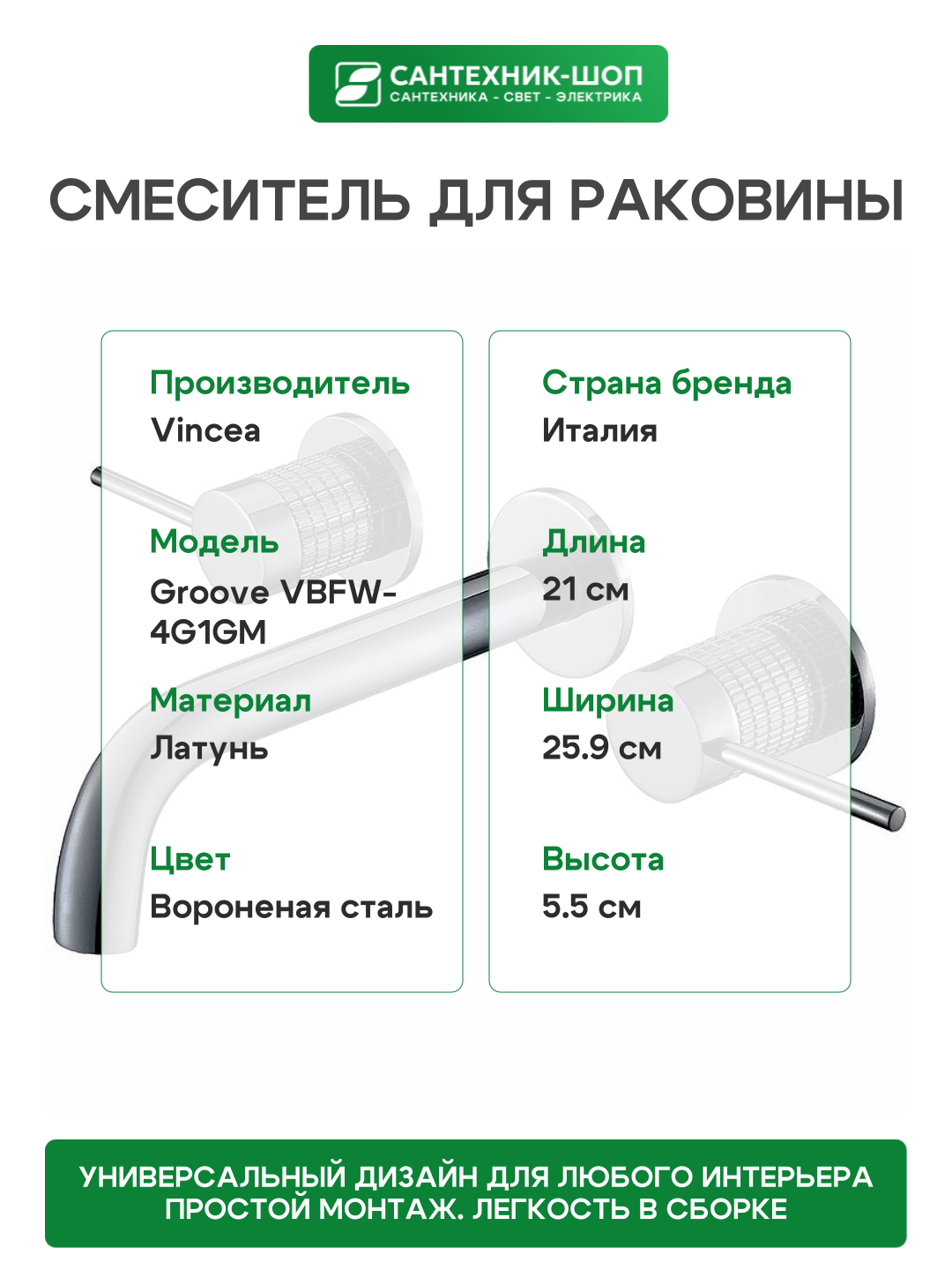 Смеситель для раковины Vincea Groove VBFW-4G1GM встраиваемый, вороненная сталь: сравнение цен, характеристики, фото, актуальное наличие и цены.