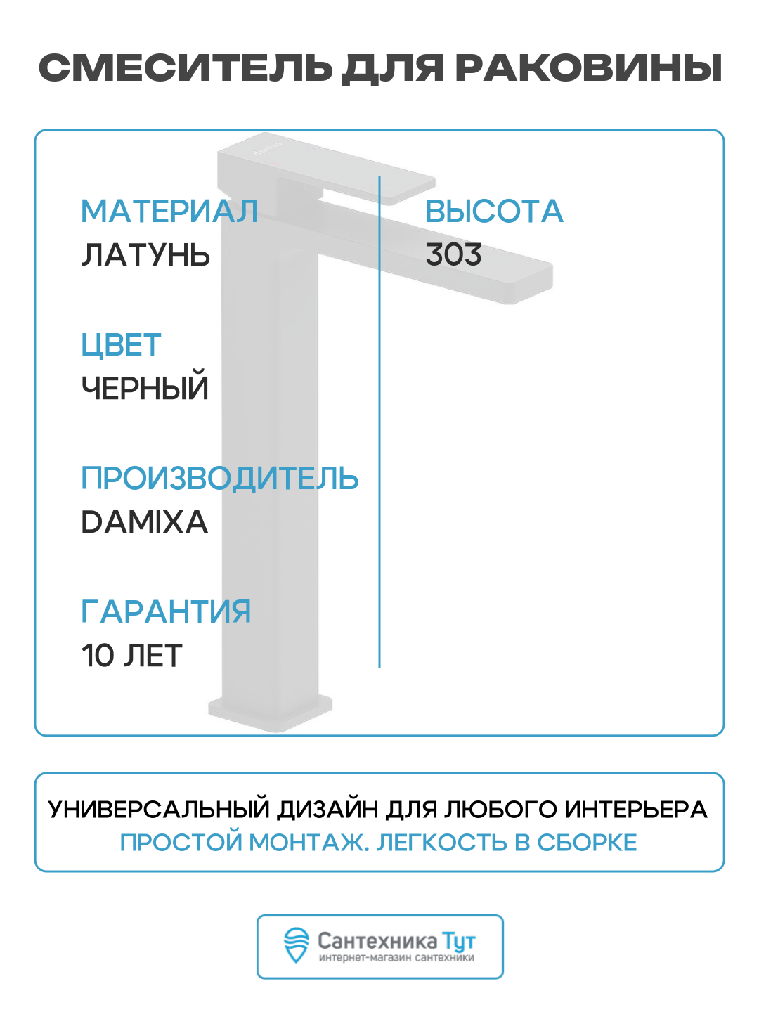 | Комплектация | смеситель, крепления, гибкая подводка, инструкция |