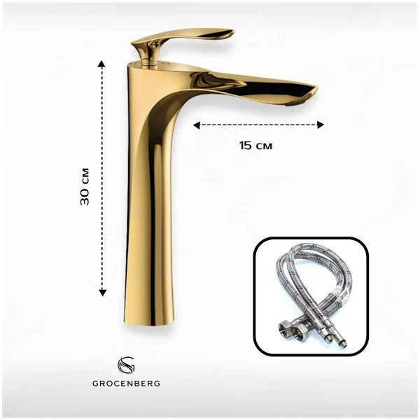 Смеситель для раковины высокий Grocenberg GB3001GO Золото: сравнение цен, характеристики, фото, актуальное наличие и цены.