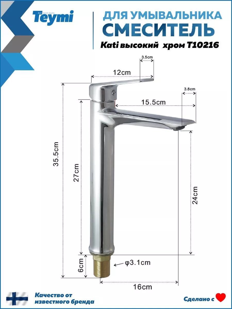 Купить Смеситель для раковины высокий хром Teymi Kati T10216 с доставкой по всей России. Смеситель для раковины высокий хром Teymi Kati T10216: сравнение цен, характеристики, фото, актуальное наличие и цены.