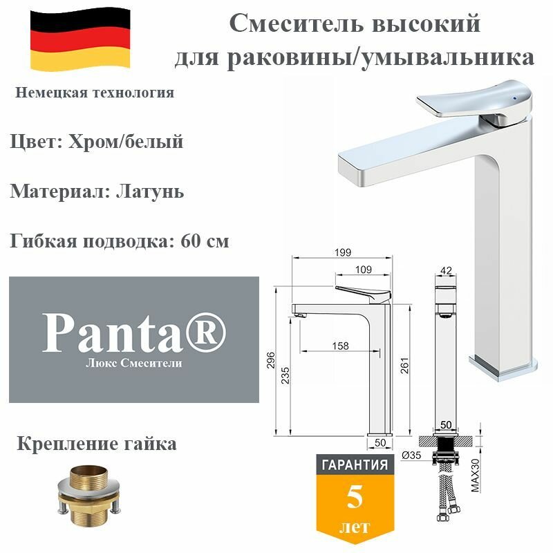 | Комплектация | 1. Смеситель для раковины 2. Гибкая подводка 2 шт. 3. Крепление гайка 4. Инструкция 5. Гарантийный талон |