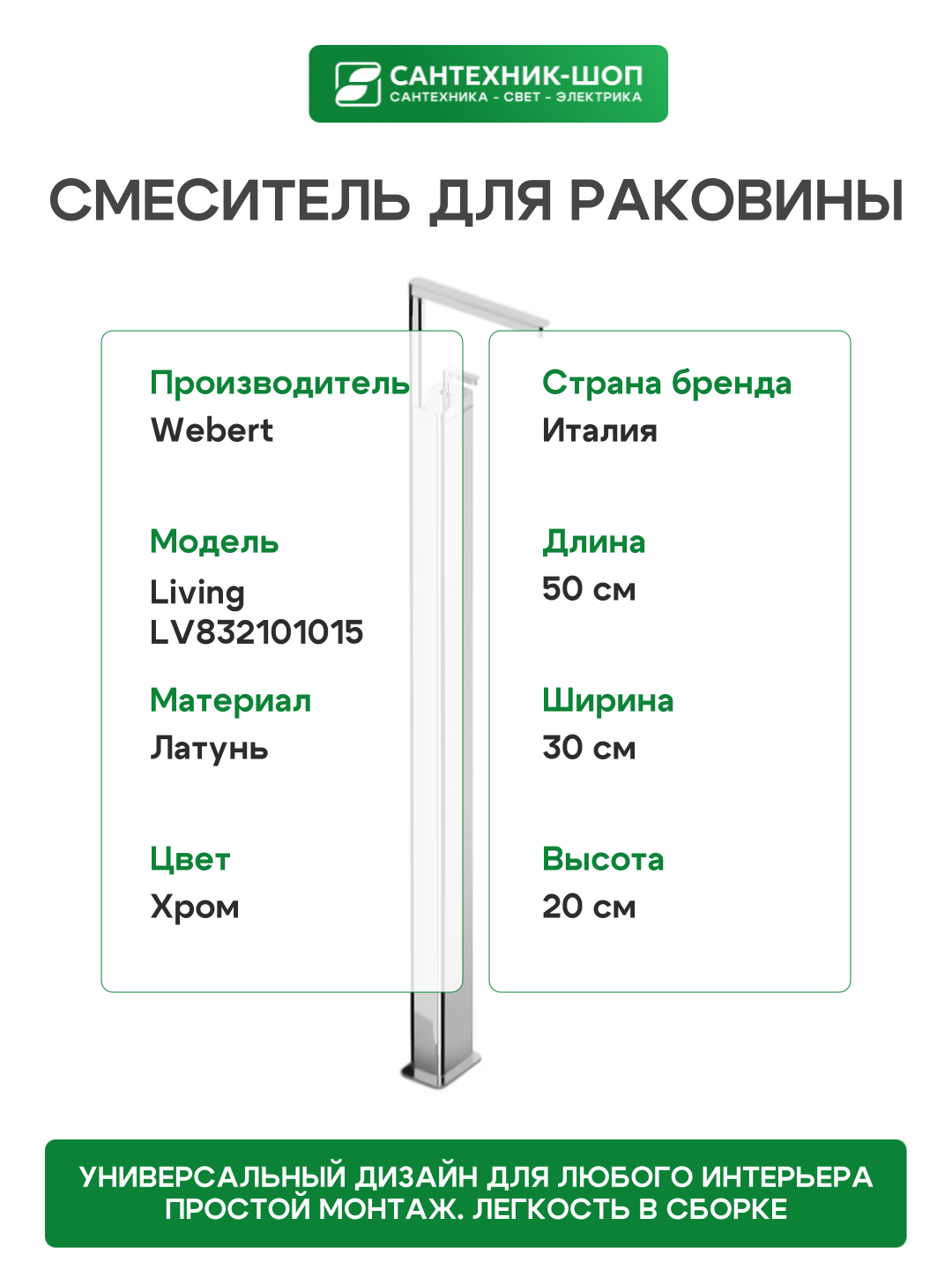 Смеситель для раковины Webert Living LV832101015 Хром латунь на пол Италия: сравнение цен, характеристики, фото, актуальное наличие и цены.
