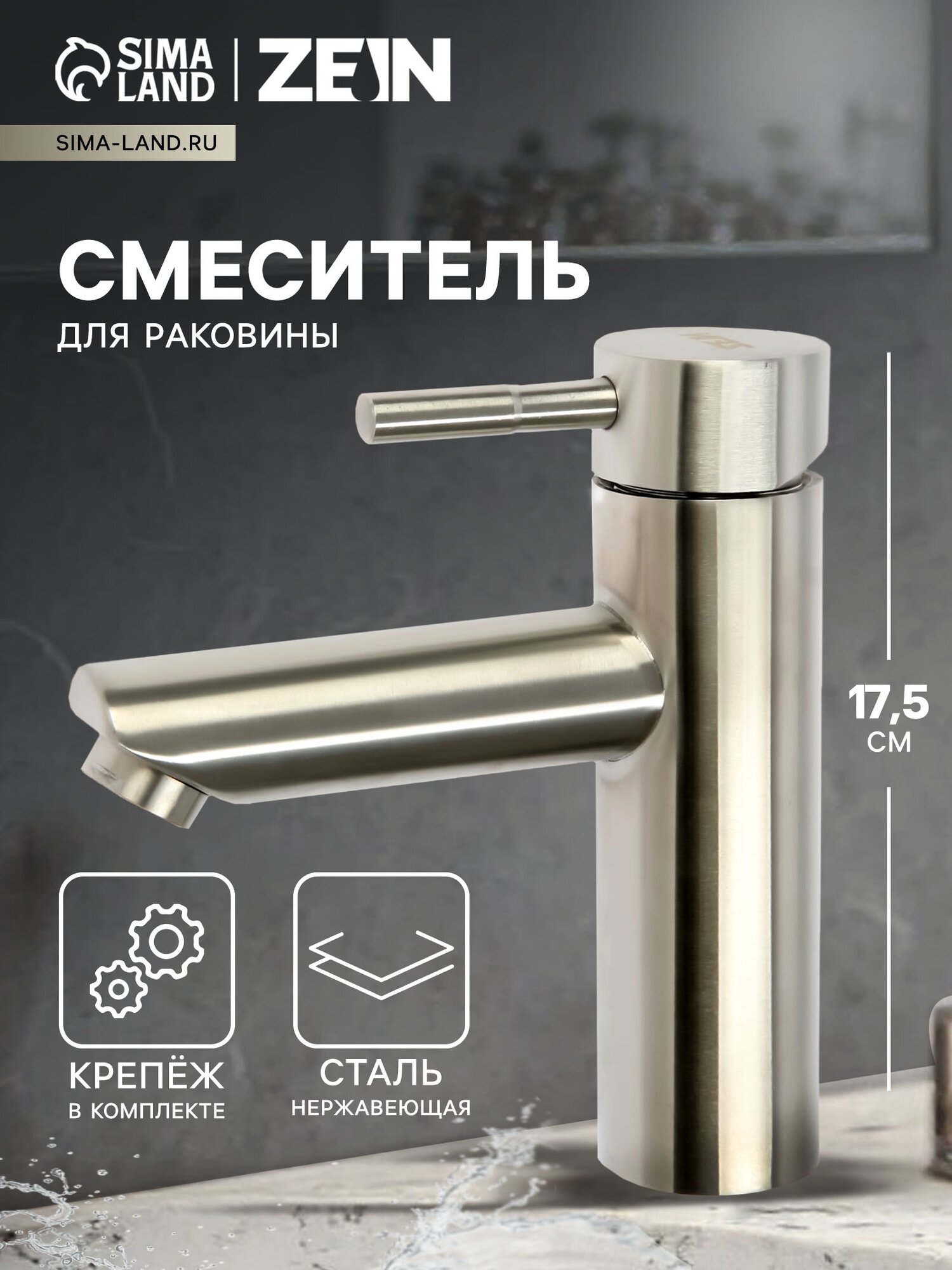 Смеситель для раковины ZEIN ZS 20103, картридж керамика 35 мм, нержавеющая сталь, сатин: сравнение цен, характеристики, фото, актуальное наличие и цены.