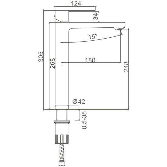 Особенностью смесителя является его высота - 30,5 см, что позволяет использовать его даже в небольших ванных комнатах. Высота излива составляет 25 см, а длина излива - 18 см, что обеспечивает удобство и комфорт при использовании.