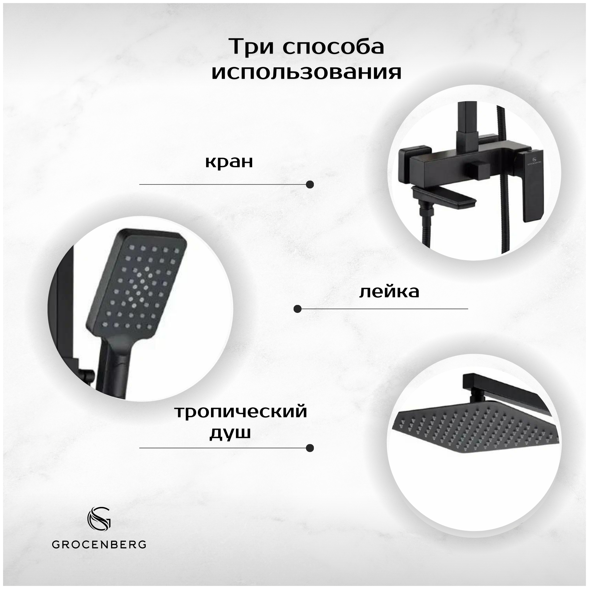Смеситель для ванной и душа душевая система черный Grocenberg GB7008BL: сравнение цен, характеристики, фото, актуальное наличие и цены.