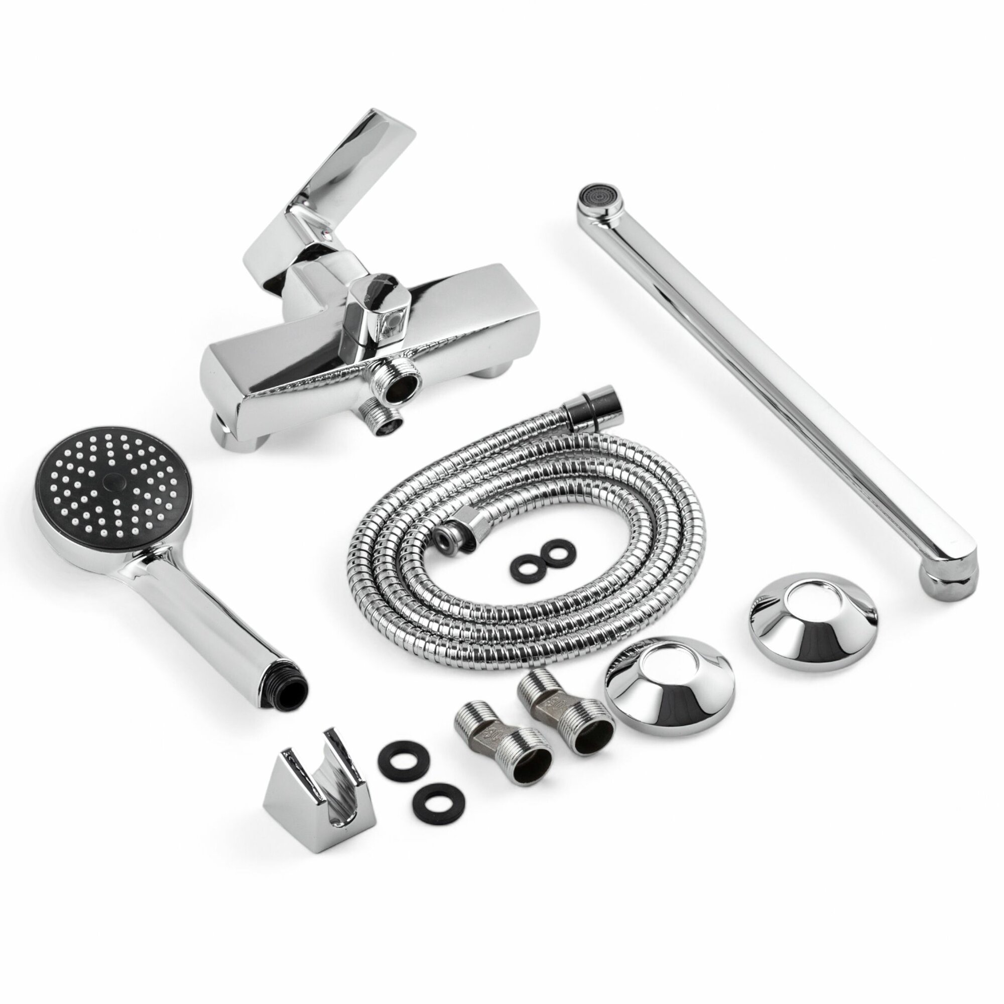 Смеситель для ванной с длинным изливом 35 см и душевым набором, хромированный: сравнение цен, характеристики, фото, актуальное наличие и цены.