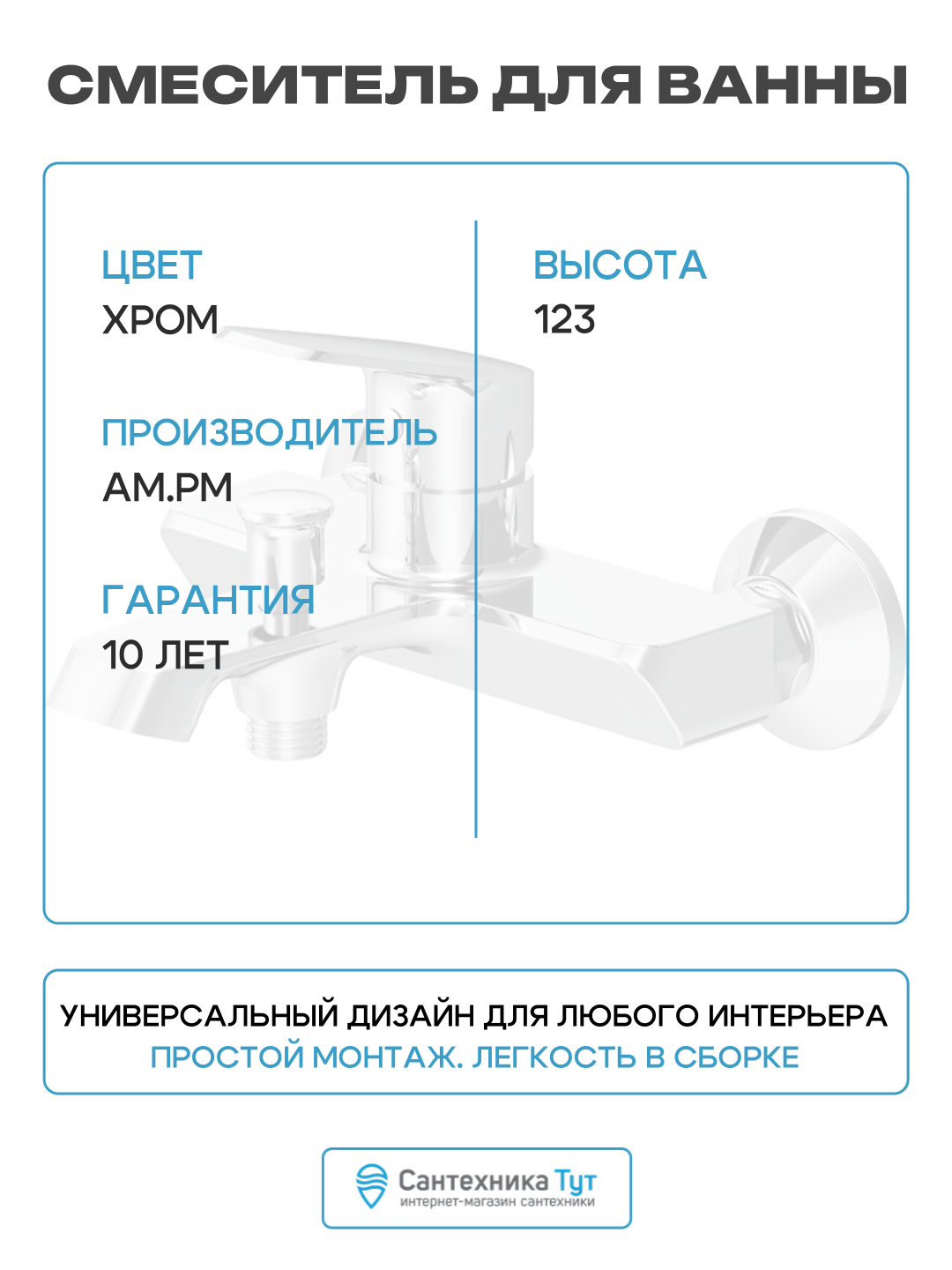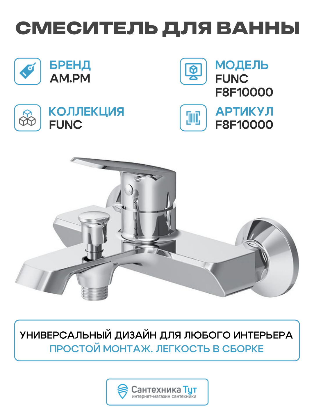 Купить Смеситель для ванны AM.PM Func F8F10000 цвет Хром Фиксированный 1/2 с доставкой по всей России. Смеситель для ванны AM.PM Func F8F10000 цвет Хром Фиксированный 1/2: сравнение цен, характеристики, фото, актуальное наличие и цены.