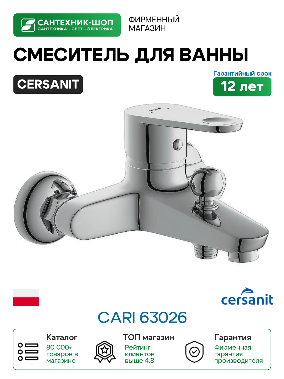 Купить Смеситель для ванны Cersanit Cari 63026 Хром латунь на стену с доставкой по всей России. Смеситель для ванны Cersanit Cari 63026 Хром латунь на стену: сравнение цен, характеристики, фото, актуальное наличие и цены.