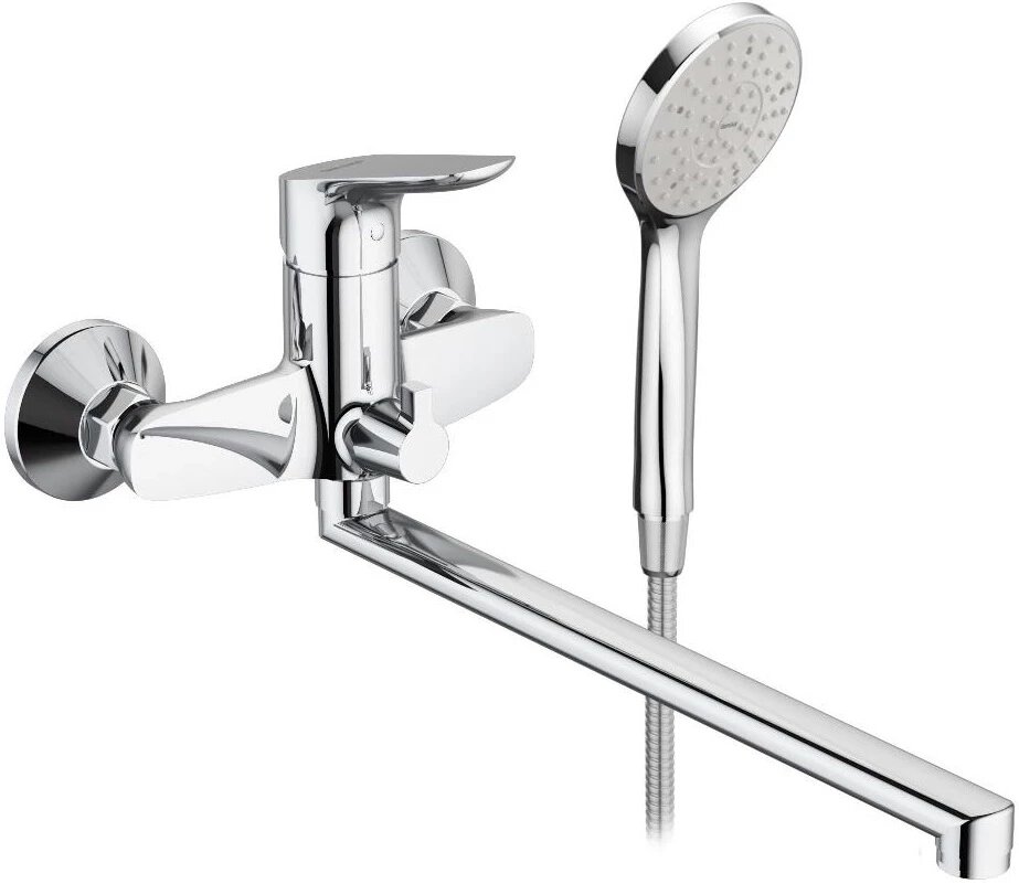 Смеситель латунный универсальный для ванны с плоским поворотным изливом 35 см. и лейкой Lemark Basis LM3617C хрoм