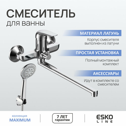 Купить Смеситель для ванны ESKO Line EL_MAX31 поворотный излив 325 мм, аксессуары для душа, латунь, хром, гарантия 10 лет с доставкой по всей России.
